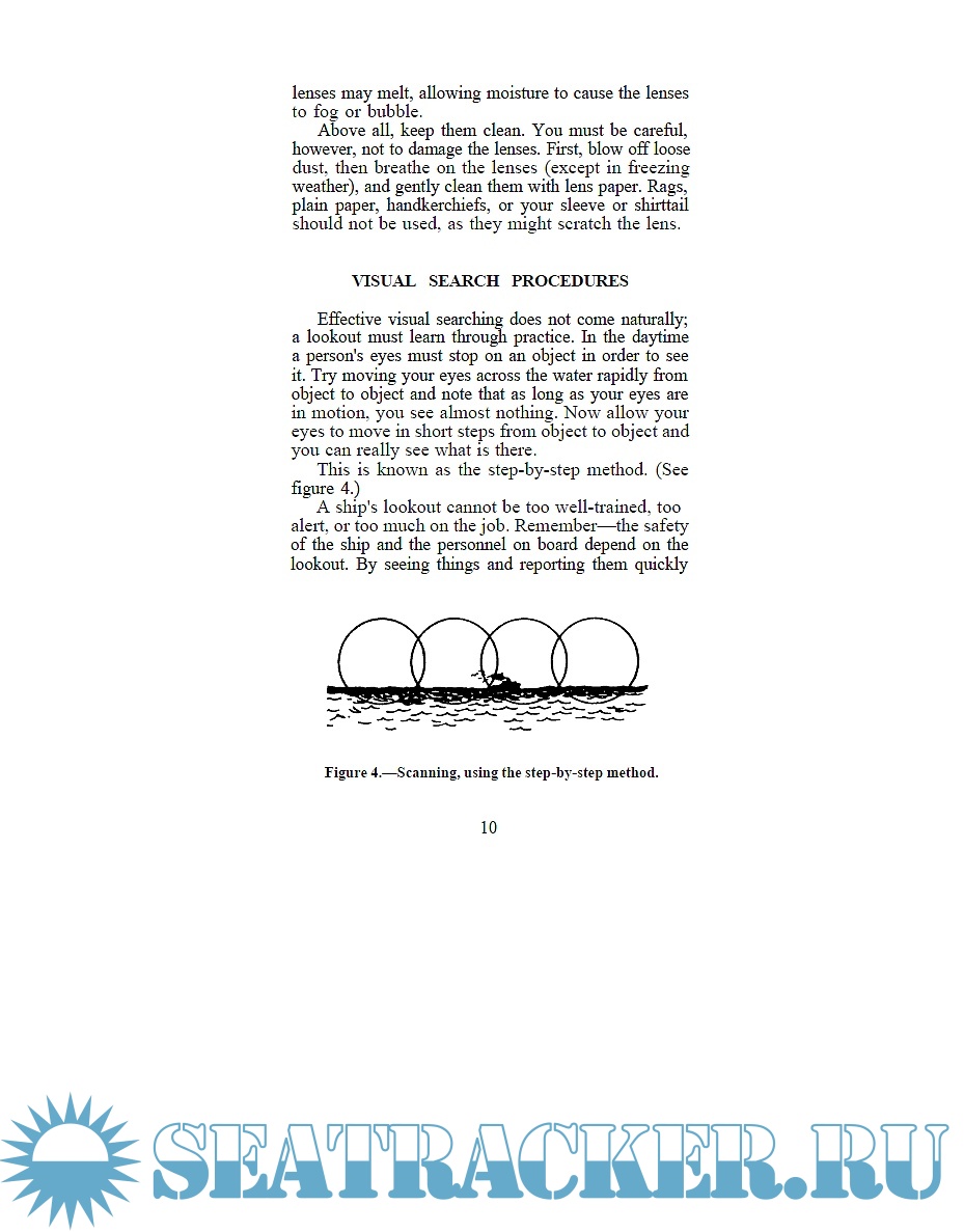 Year: 2000 Language: english Author: US Navy Genre: Guide Publisher: US Navy Format: PDF Quality: eBook Pages count: 83 Description: This booklet is entirely dedicated to lookout training and procedures. A lookout is a person detailed to observe everything within an assigned sector and to report everything from that sector, usually to an officer of a military vessel. The safety and efficiency of the ship obviously depend to a great degree on the alertness and effectiveness of lookouts, and every vessel shall at all times maintain a proper look-out by all available means, as per rule 5. Even if written for the Navy, this guide is of interest for merchant and pleasure vessel, that may need to strengthen lookouts in poor visibility or close quarters conditions. This guide discusses and presents visual search patterns and contact reporting procedures; speed and track estimation; ship/aircraft recognition; Rules of the Road; buoy systems; special sea detail; restricted visibility steaming; and man-overboard procedures, along with lookout equipment you in your capacity as a lookout.