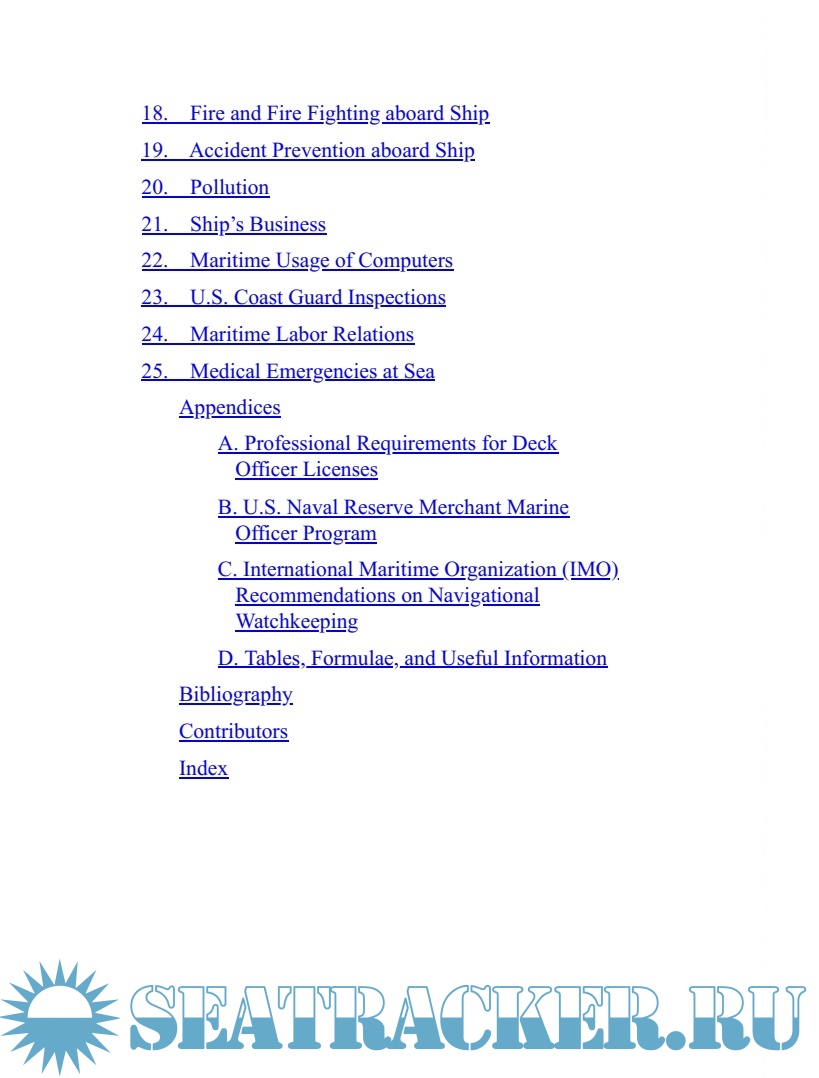Additional info: Настоящая книга считается на ряду с ''American Practical Navigator'' Библией для судоводителей и особенно для младших офицеров. Он будет особенно полезен для 3-го помощника капитана.
