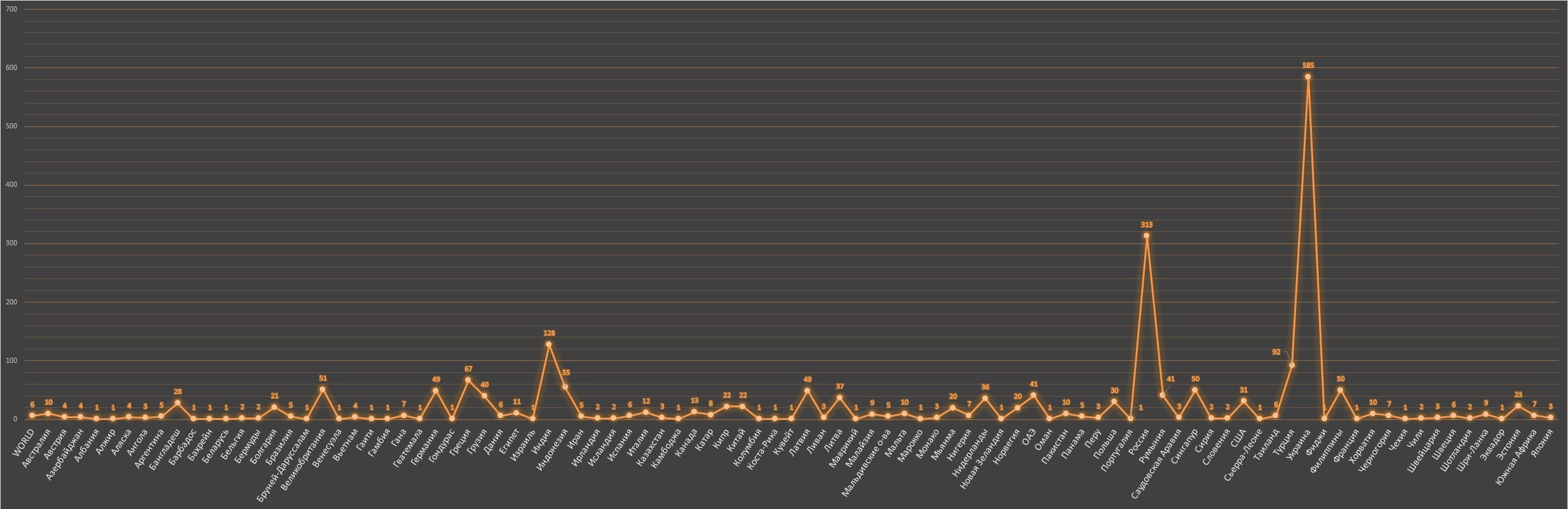 К примеру по количеству агенств, крюингов, владельцев по странам