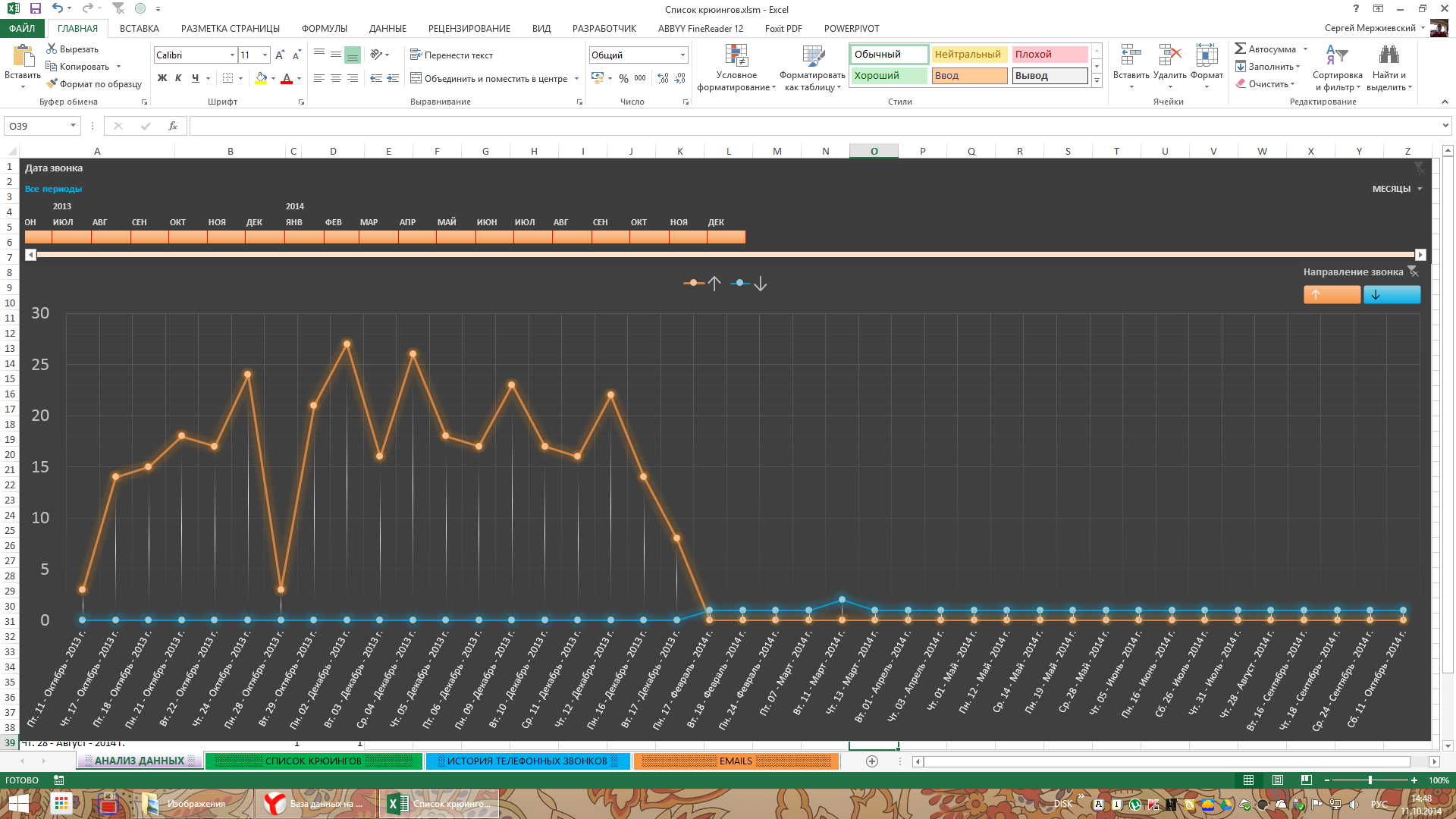 На этом графике показывается сколько раз мне или я звонил за день, месяц, год и т.д.