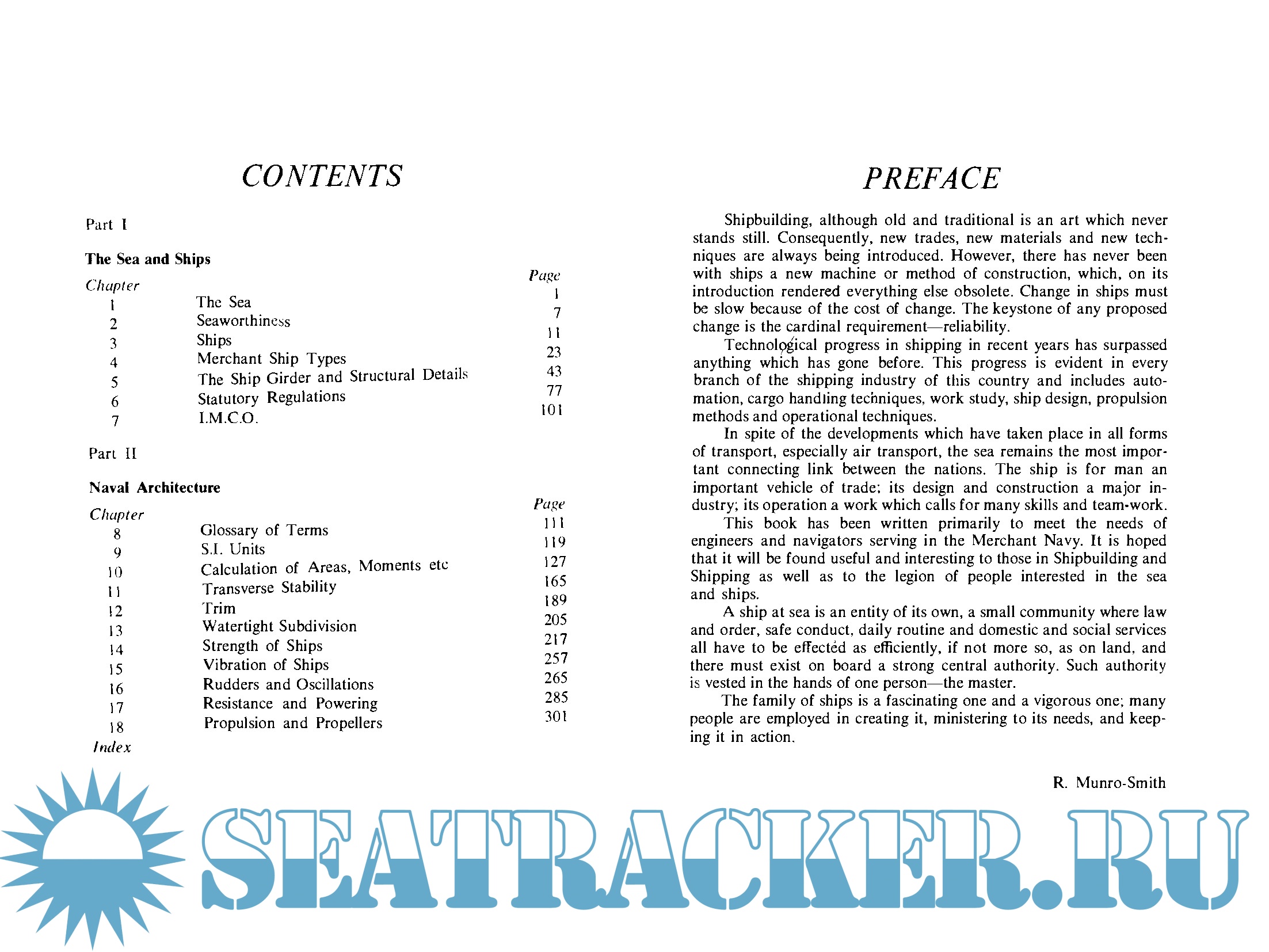 Part 2 discusses the basic principles of naval architecture, covering definitions of symbols and terms such as transverse stability, rudders and oscillation and propulsion and propellers.