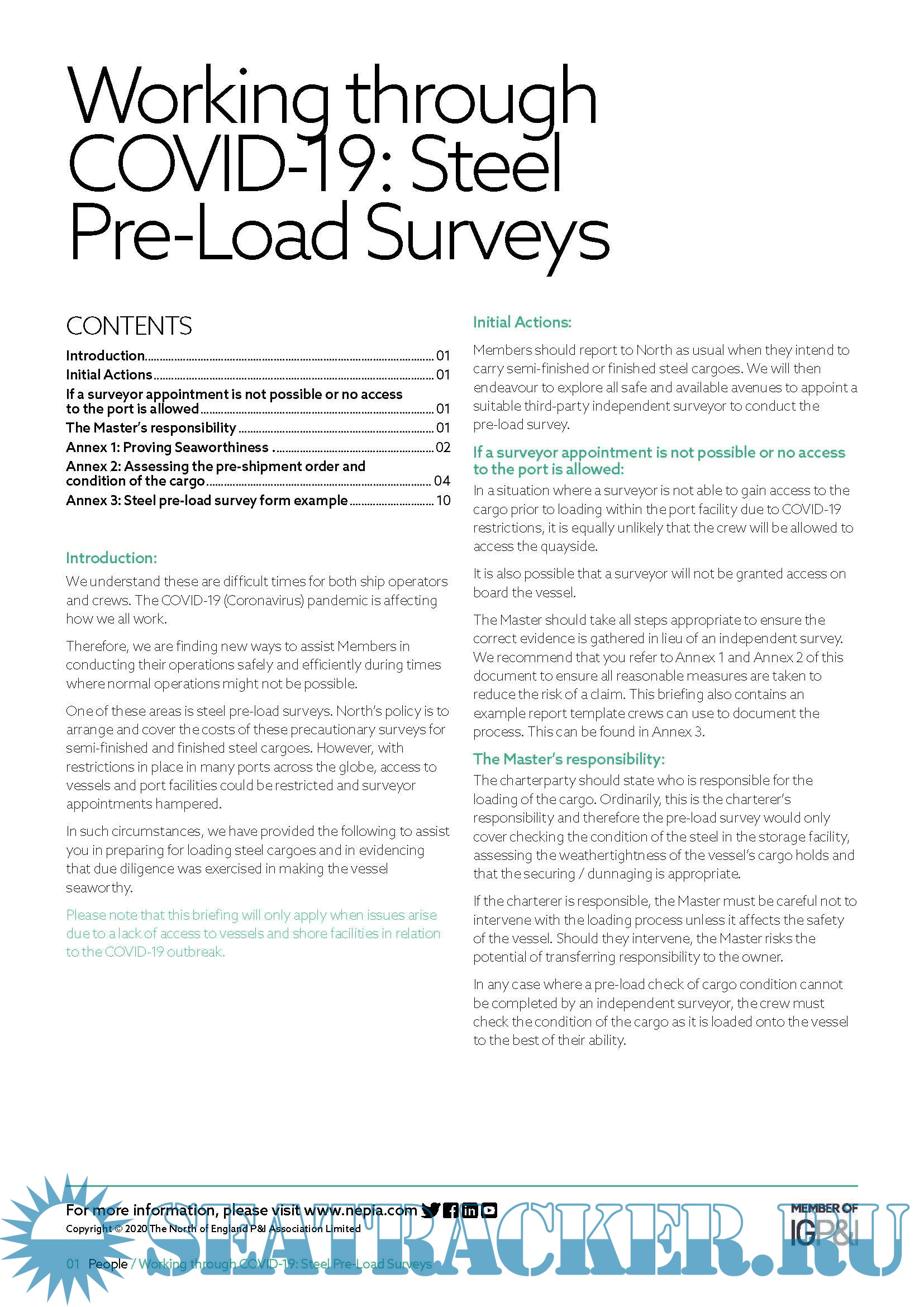 One of these areas is steel pre-load surveys. North’s policy is to arrange and cover the costs of these precautionary surveys for semi-finished and finished steel cargoes. However, with restrictions in place in many ports across the globe, access to vessels and port facilities could be restricted and surveyor appointments hampered.