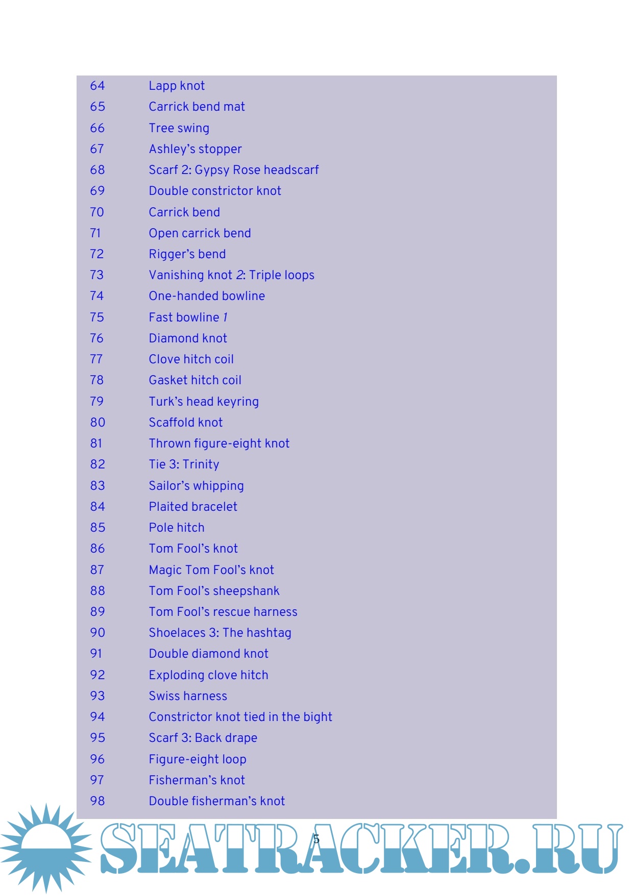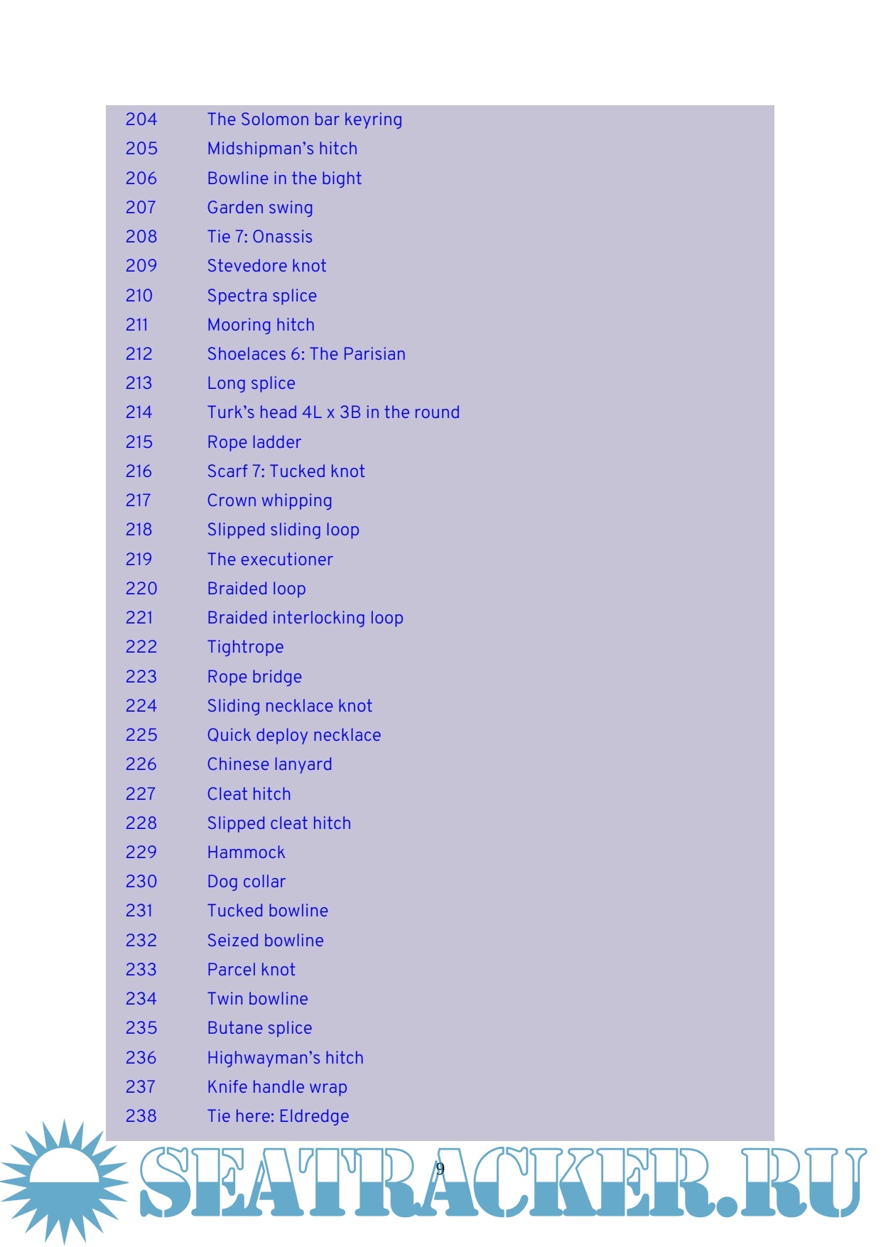 You won't escape this book without learning something, and you won't put it down without picking up an interesting fact or useful technique. Give it a month and you'll be a knot tying fanatic; give it a year and you'll be a knotting supremo!