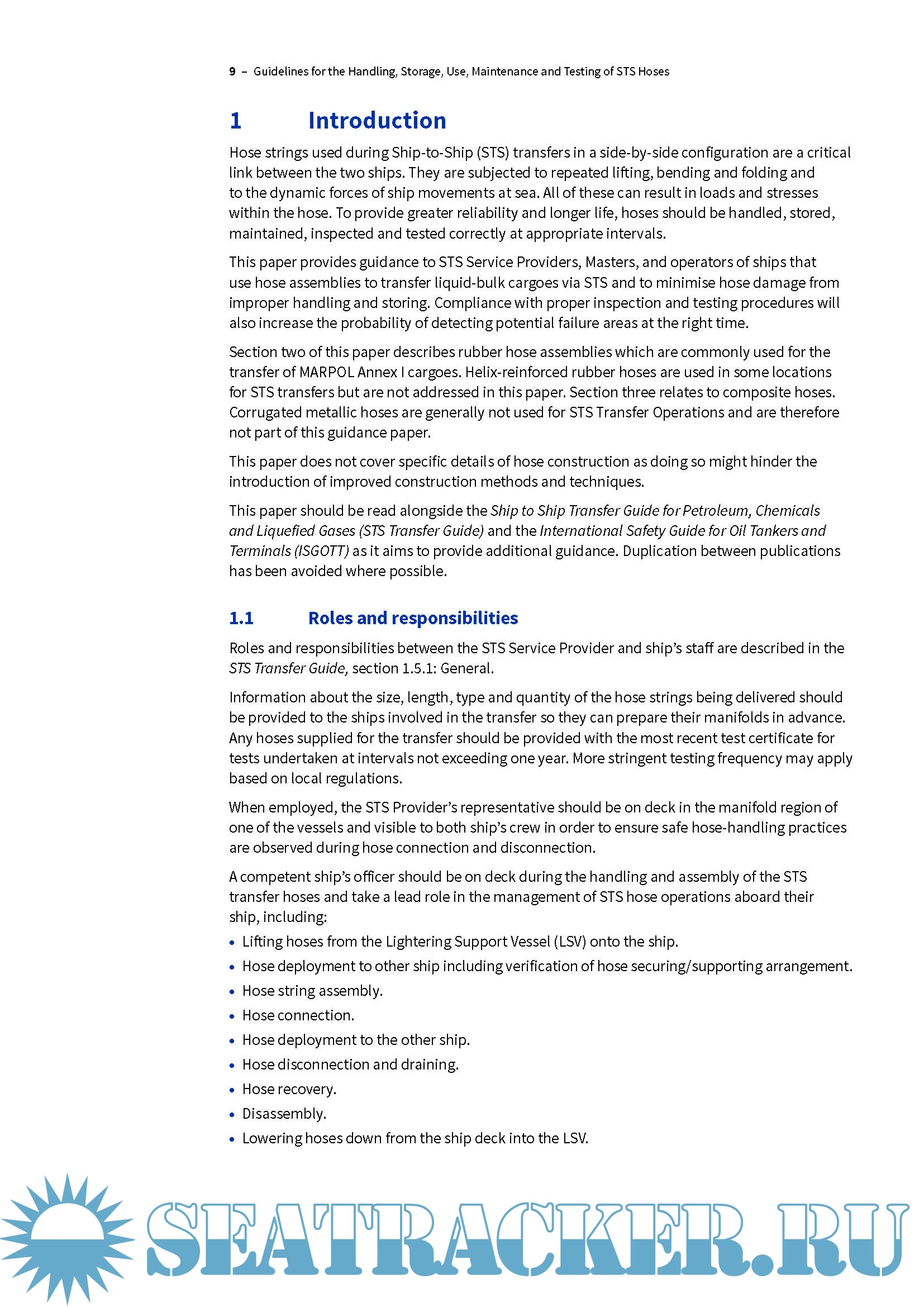 Description: Guidelines for the Handling, Storage, Use, Maintenance and Testing of STS Hoses, provides guidance to STS Service Providers, Masters, and operators of ships that use hose assemblies to transfer liquid-bulk cargoes via STS and to minimise hose damage from improper handling and storing.