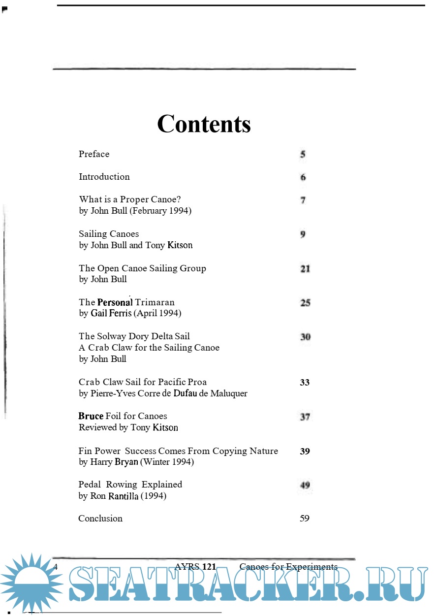 Year: 1996 Language: english Author: AYRS Genre: Collection of books Publisher: AYRS Format: PDF Quality: Scanned pages Pages count: 62 Description: The AYRS is a UK registered Educational Charity (No 234081) dedicated to finding out how to make yachting better (faster, more fun, whatever you want it to be). Our members run from sober sided professional yacht designers and builders to bearded eccentrics full of ideas that they cannot make work.From our members have come the modern sailing multihulls, self-steering gear, sailboards, a flock of successful sailing hydrofoils, the World Speed Sailing Record system, etc. Now people are taking off with kiteboats and autogyro-sails, and the first amphibious bicycle.