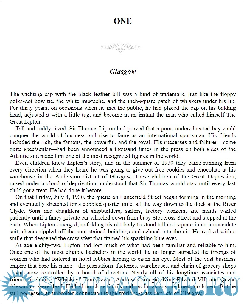 Year: 2010 Language: english Author: Michael D’Antonio Genre: History Publisher: Penguin Books - Riverhead ISBN: 978-1-101-18875-0 Format: EPUB Quality: eBook Pages count: 354 Description: This book is the story of a Scotsman who was born poor in Victorian age and ended up a self-made millionaire, adventurer, and sailing legend who contended for the America's Cup many times. Lipton’s attempts to win the America’s Cup, the renowned yachting trophy, gave him to the public on both sides of the Atlantic and made him a true celebrity, because there never was a more passionate competitor, but equally never a more gracious loser. And his failed quest drew great admiration and sympathy. In a 1931 visit to New York, SIr THomas Lipton was praised by Mayor Jimmy Walker as “the greatest sportsman of our time".