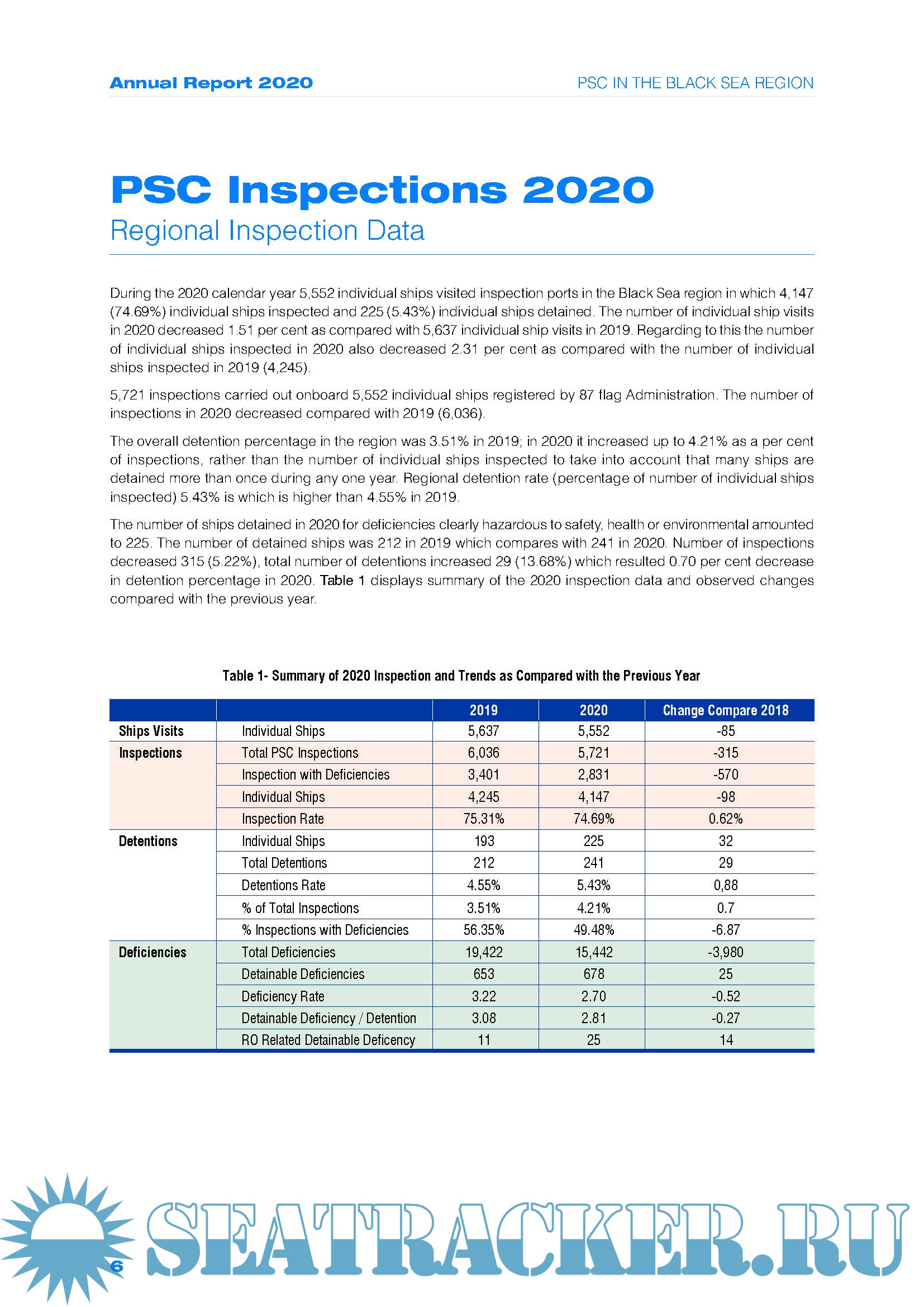 Year: 2021 Language: english Author: BlackSea MOU Genre: Research papers Format: PDF Quality: eBook Pages count: 30 Description: the twentieth issue of the Annual Report on Port State Control in the Black Sea region which is published under the auspices of the Port State Control Committee of the Black Sea MOU. Port State Control is of particular importance to the BS MOU member Authorities due to the role of shipping in region’s trade, the sensitivity of the Black Sea basin and its coastline to environmental damage. PSC inspections are conducted to ensure that foreign ships visiting the Black Sea ports are seaworthy, do not pose a pollution risk, provide a healthy and safe environment and comply with relevant international regulations and within the scope of the member Authorities’ national governing laws and regulations. This PSC Annual report covers the period between 1st January and 31st December 2020, a year dominated by the global Covid-19 pandemic that changed the world, affected millions of people and also caused significant impact on BS MOU activities. During this period national measures affecting the port State control regime was implemented by the BS MOU member Authorities due to ongoing pandemic.