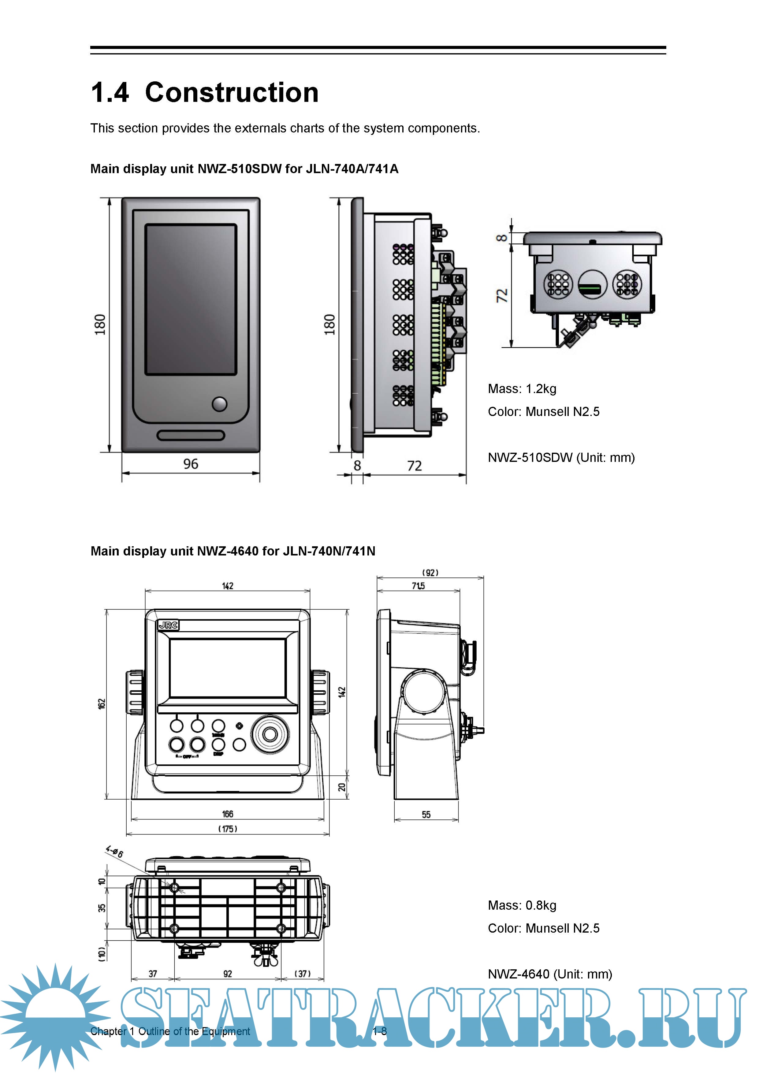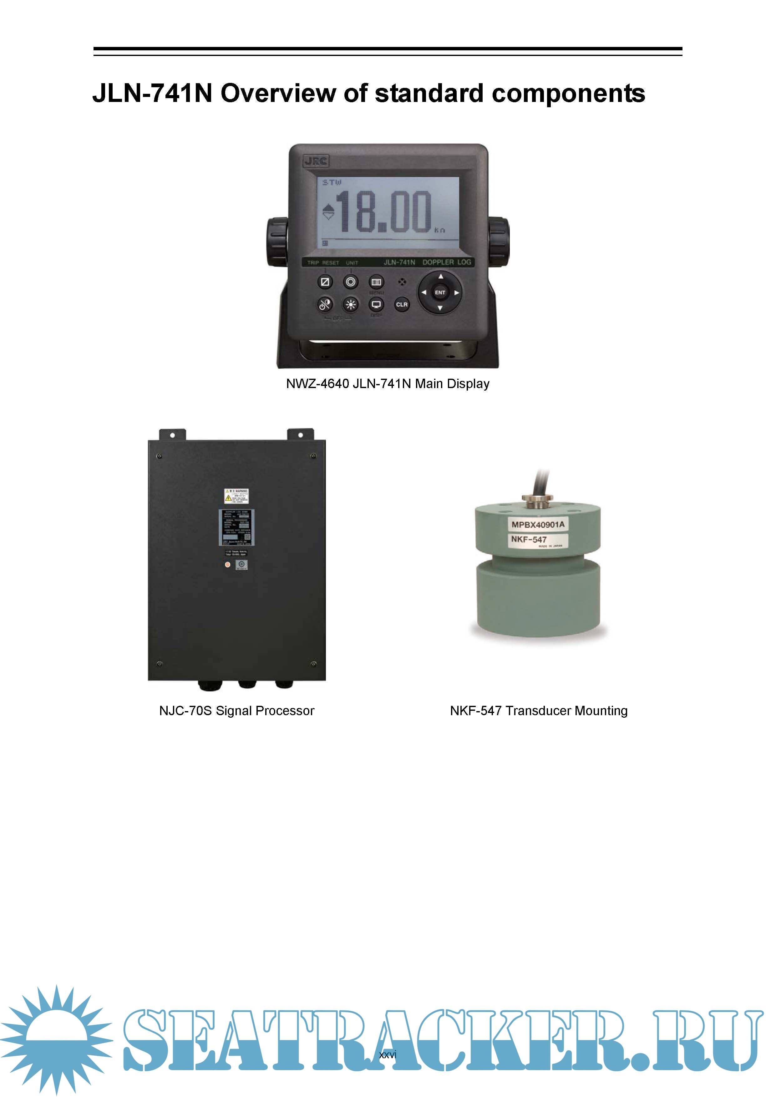 Description: JLN-740A/740N/741A/741N Doppler Log. This equipment is an SDME (Speed and Distance Measuring Equipment), complying with the regulations of IMO (International Marine Organization), measures and displays wide-range ship