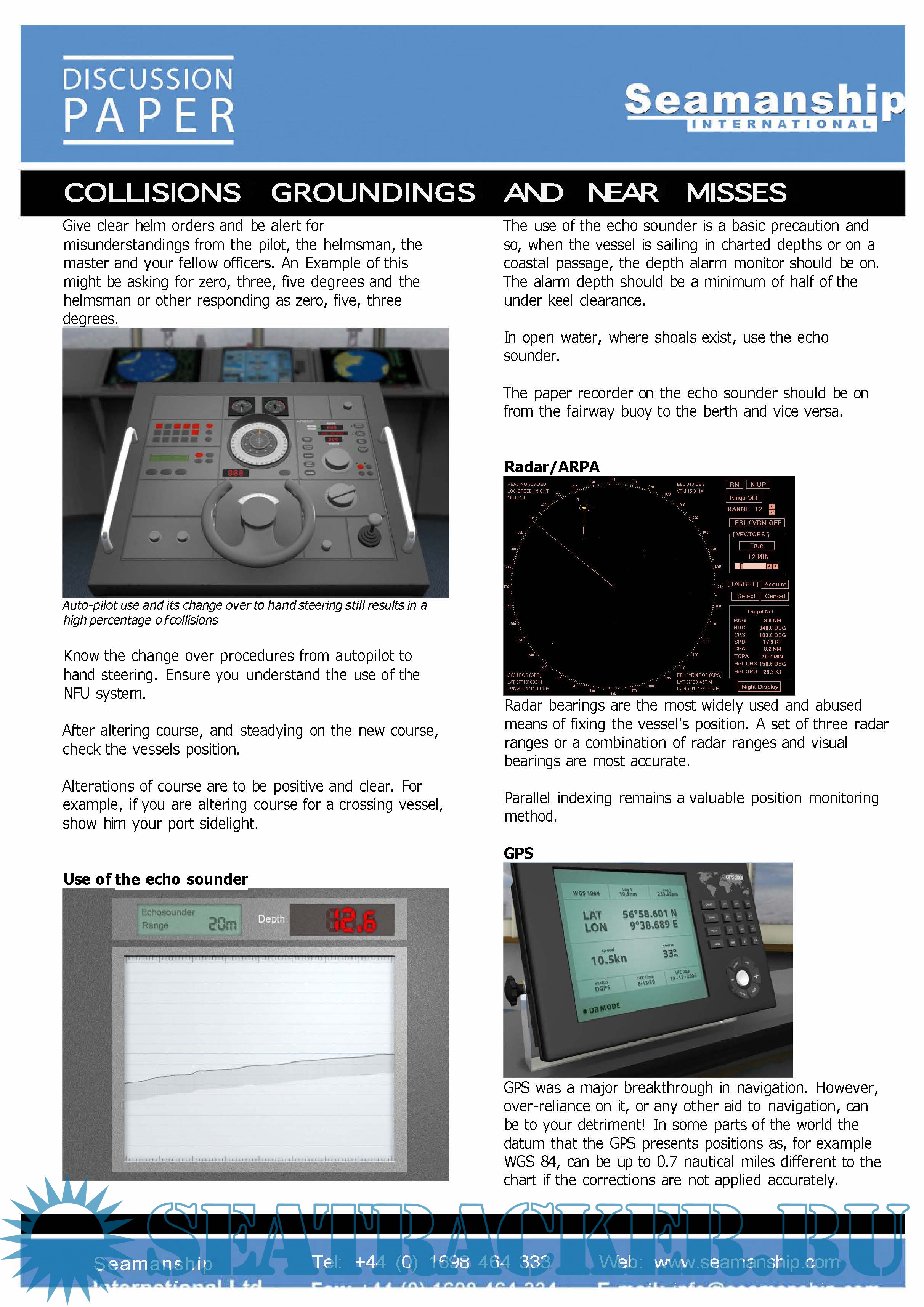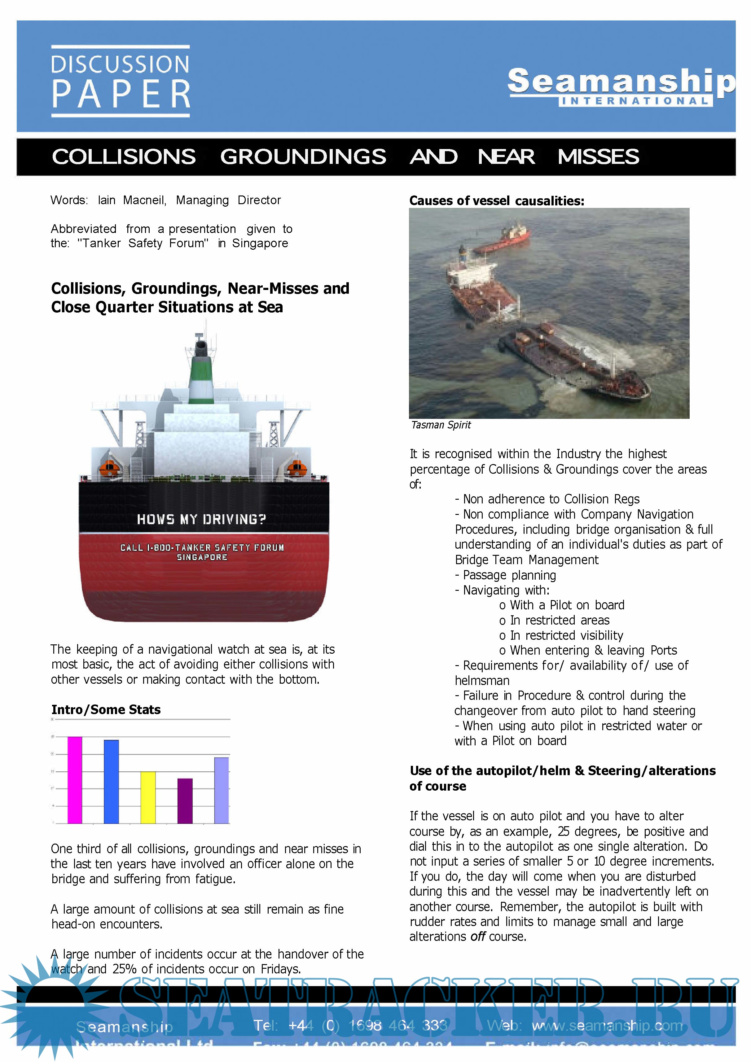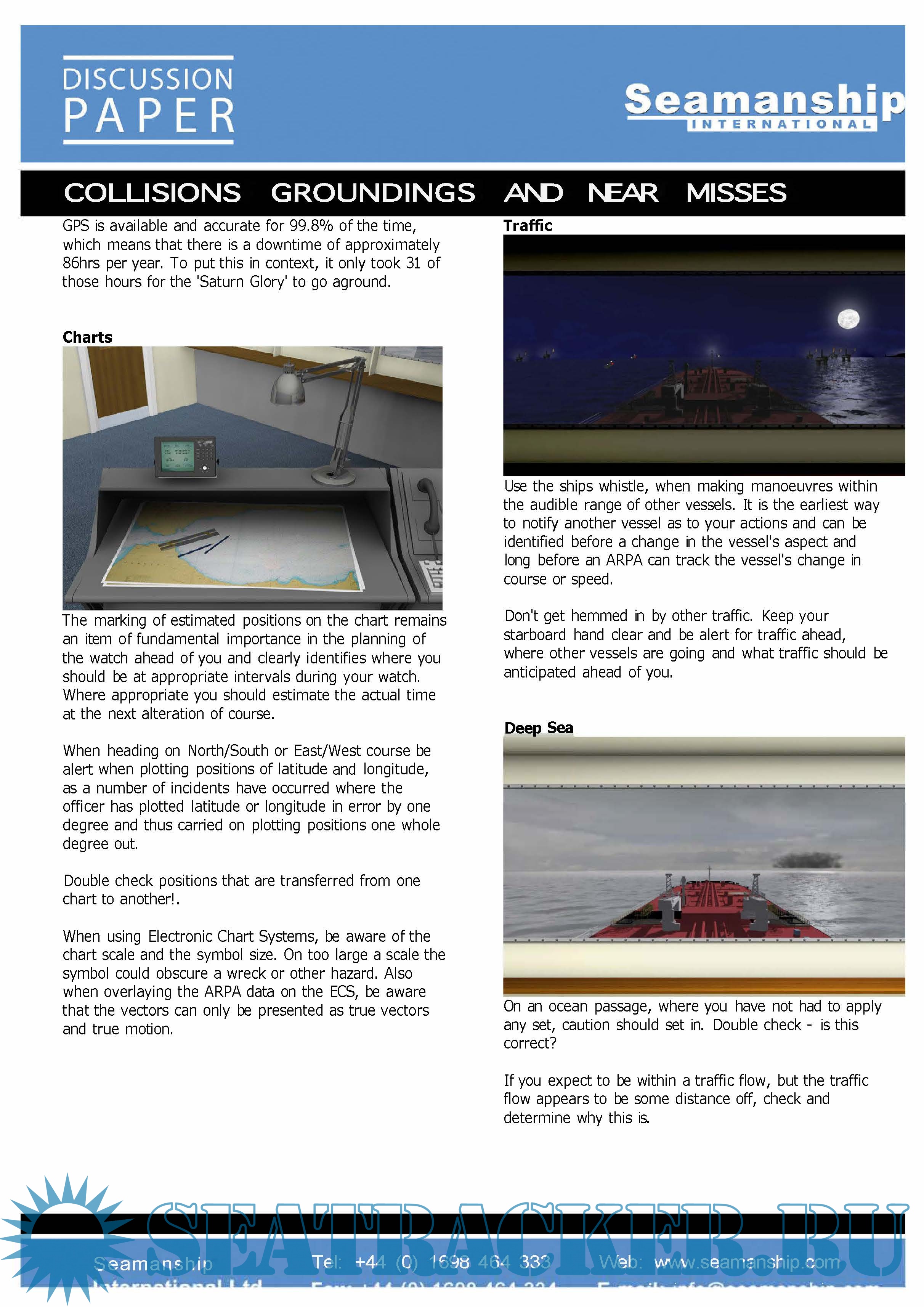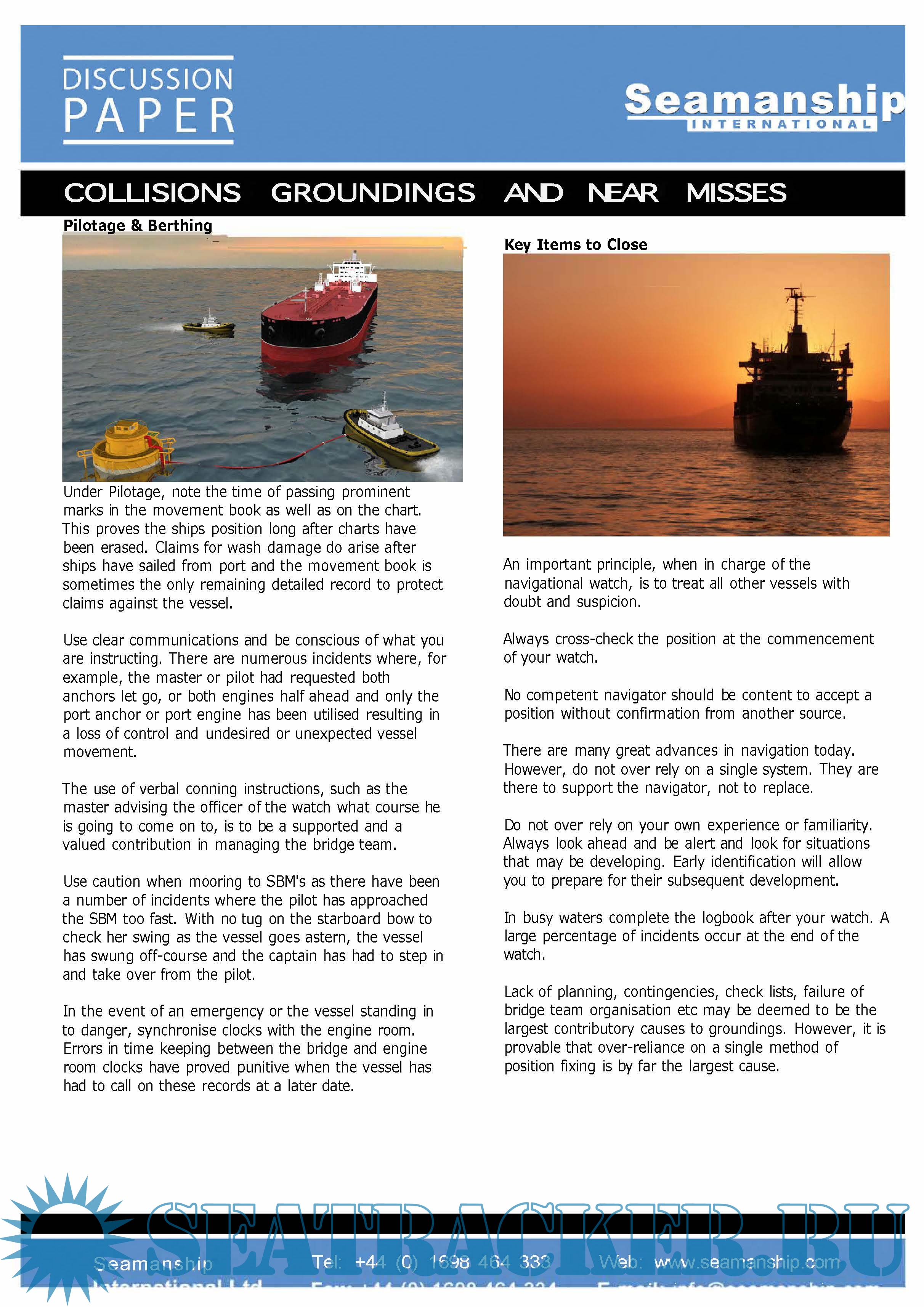 Year: 20xx Language: english Author: Seamanship International Format: PDF Quality: Scanned pages Pages count: >0 Description: Collisions, Groundings, Near-Misses and Close Quarter Situations at Sea Discussion Paper