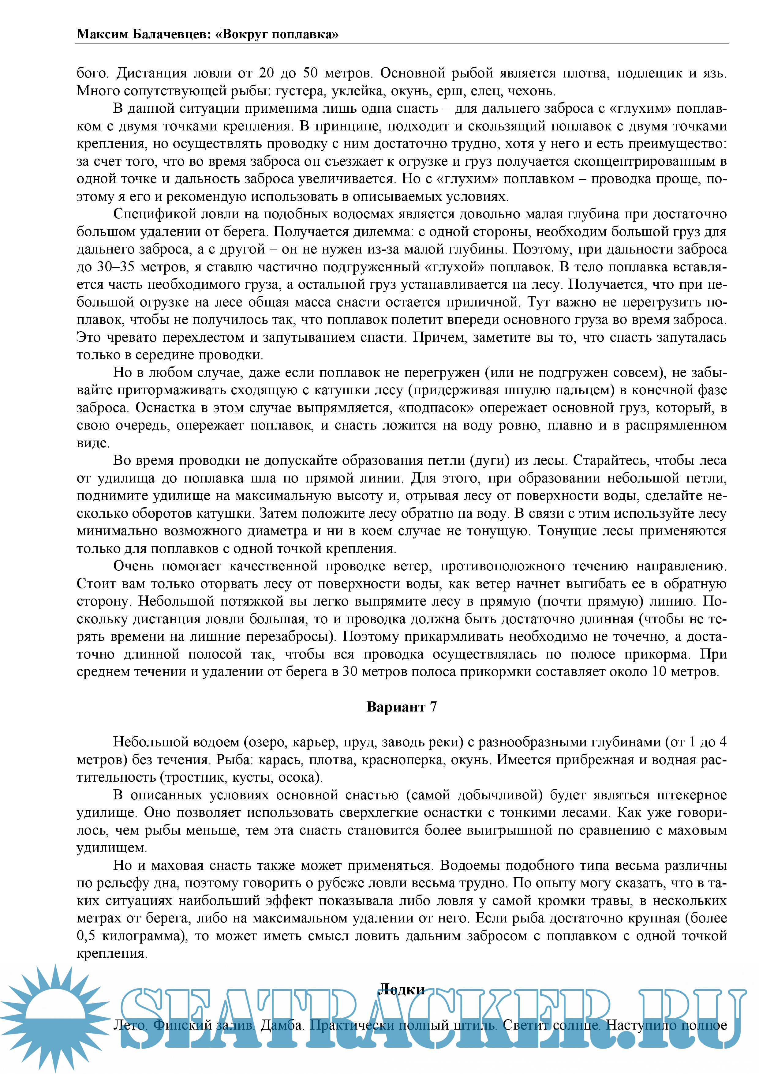 Описание: Техника и тактика ловли на водоемах различных типов, современные рыболовные принадлежности и снаряжение, а также прикормка – вот темы труда капитана сборной Санкт-Петербурга по поплавочной удочке Максима Балачевцева, участника и неоднократного призера российских и международных рыболовных соревнований
