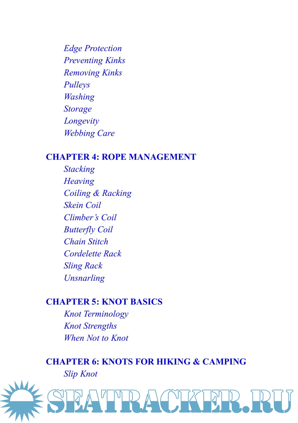 Chapters include Knots Basics (from Tripod Lashing to the Figure 8 Loop), Knots for Hikers and Climbers (from the Prusik knot to the Autoblock), Knots for Canoeists and Kayakers (from the Buntline hitch to the Bowline on a bight), and more. This is the definitive text on ropes and knots for anyone who plays in the outdoors!