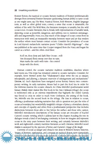 Description: This book initiates a conversation about blue ecocriticism: critical, ethical, cultural, and political positions that emerge from oceanic or aquatic frames of mind rather than traditional land-based approaches.