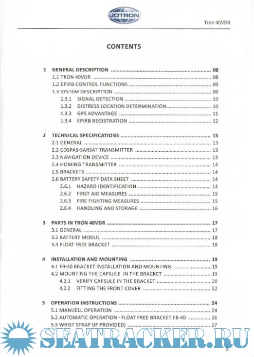JOTRON Tron40 VDR Float Free Emergency Transmitter with VDR - User Manual