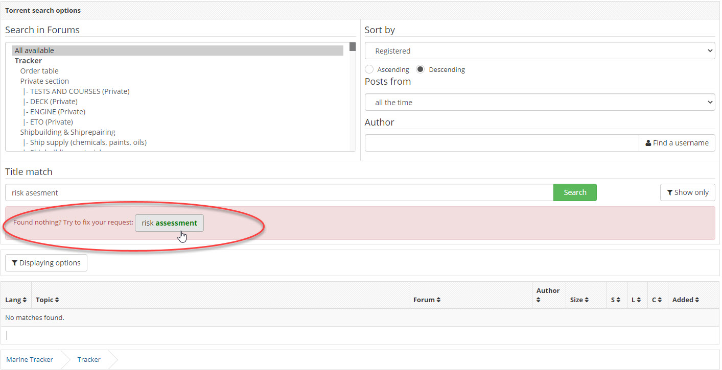 Added spelling and typo checking when searching by tracker