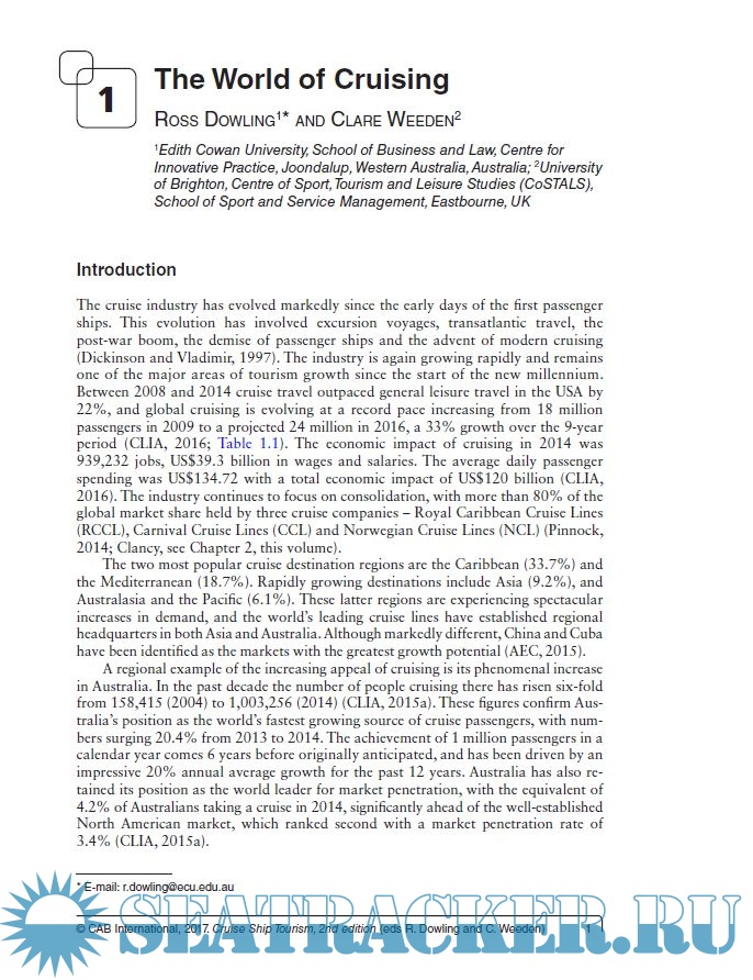 Description: Completely updated and revised, Cruise Ship Tourism, 2nd Edition covers the economic, social and environmental impacts of cruising, combining the latest knowledge and research to provide a comprehensive account of the subject. Despite the industry growing rapidly, there is a substantial gap in the related literature, and this book addresses the key issues for researchers, students and industry professionals.