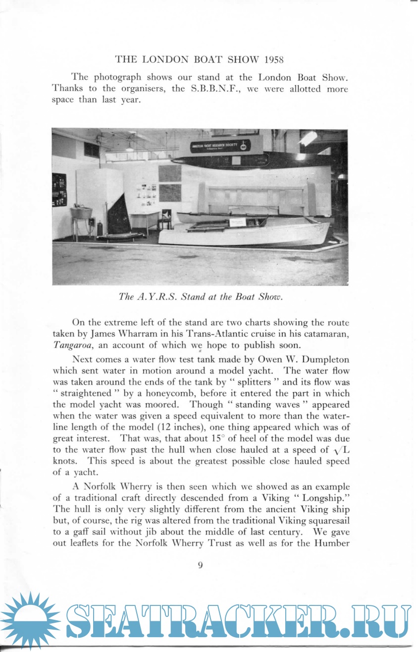 Year: 1958 Language: english Author: A.Y.R.S. Genre: Collection of books Publisher: A.Y.R.S. Format: PDF Quality: Scanned pages Pages count: 40 Description: The AYRS is a UK registered Educational Charity (No 234081) dedicated to finding out how to make yachting better (faster, more fun, whatever you want it to be). Our members run from sober sided professional yacht designers and builders to bearded eccentrics full of ideas that they cannot make work.From our members have come the modern sailing multihulls, self-steering gear, sailboards, a flock of successful sailing hydrofoils, the World Speed Sailing Record system, etc. Now people are taking off with kiteboats and autogyro-sails, and the first amphibious bicycle.