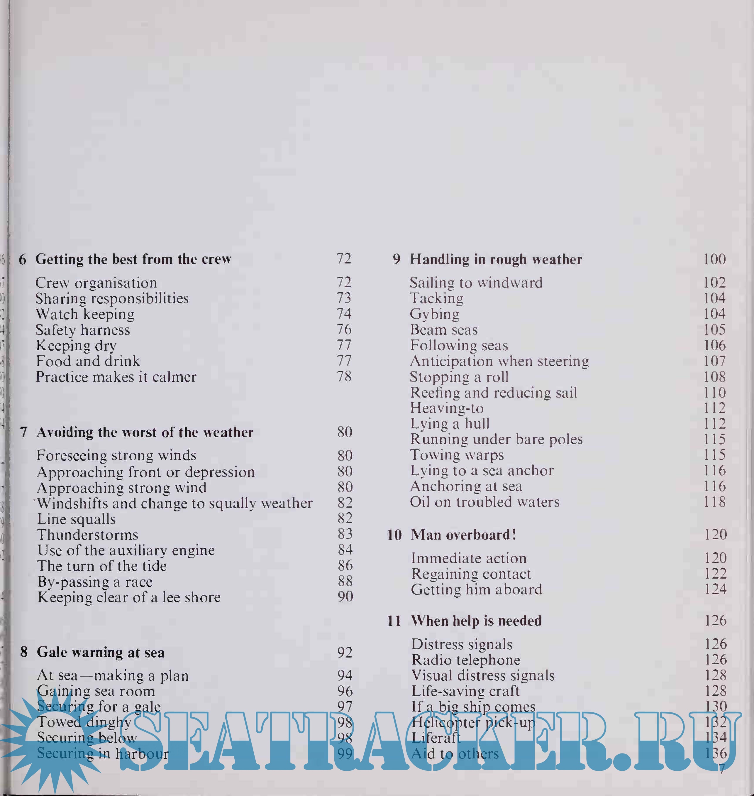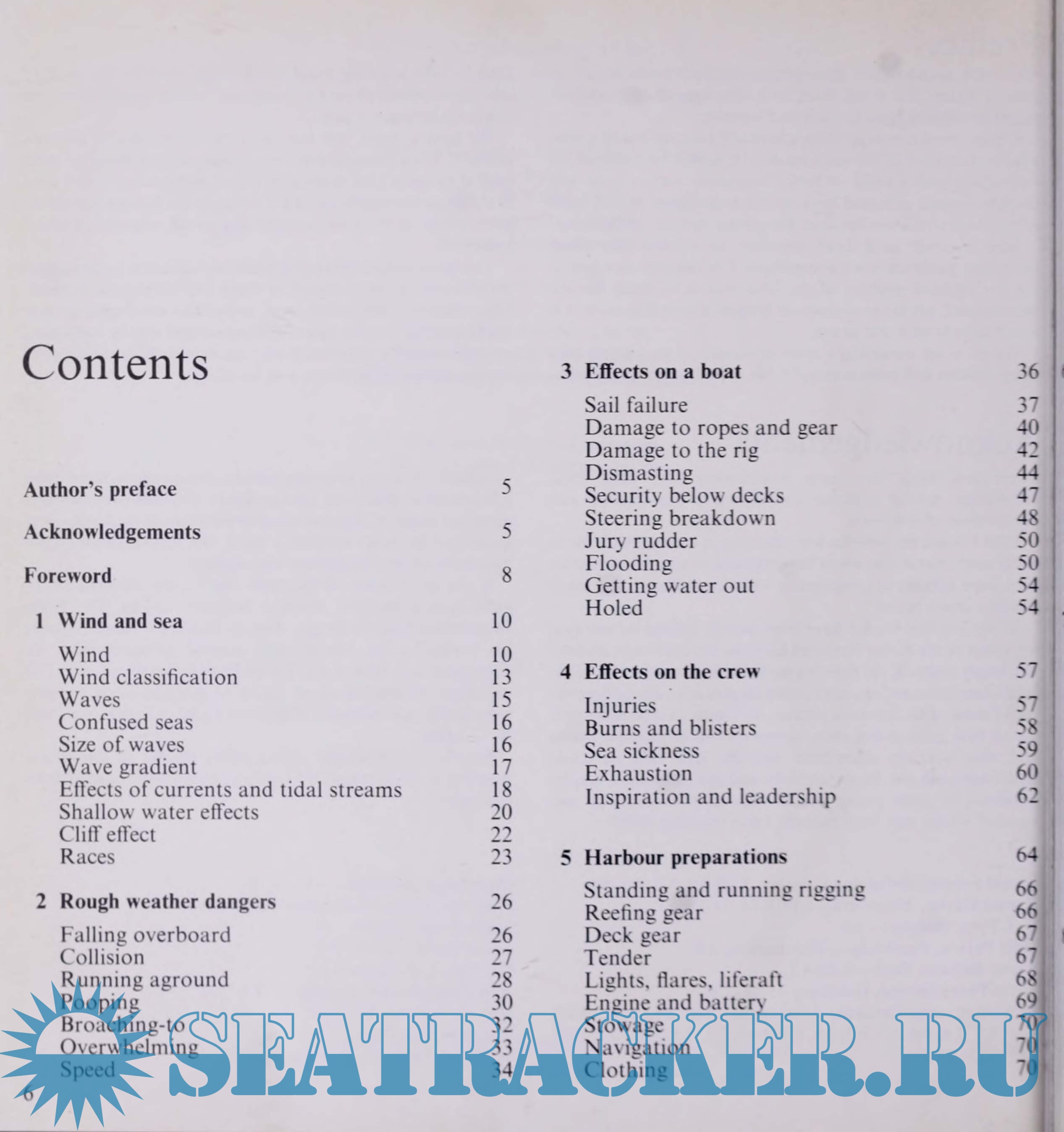 Year: 1980 Language: english Author: Erroll Bruce Genre: Handbook Publisher: SAIL BOOKS, INC. Edition: First ISBN: 0-914814-23-0 Format: PDF + EPUB Quality: Scanned pages Pages count: 142 Description: Good workbook for that bad weather. Read this book on a nice calm day. If you need this book, it's probably too late to read it. In rough weather you are tired, wet, perhaps a little queasy, getting around the boat is dangerous and difficult. Bruce lays out clear and simple strategies for managing yourself and the boat in bad conditions. Having experienced up to force 9 myself I can heartily recommend Bruce as a guide for what to do. You can sail safely in dreadful conditions, as long as you know what you are doing. Additional info: PDF & EPUB