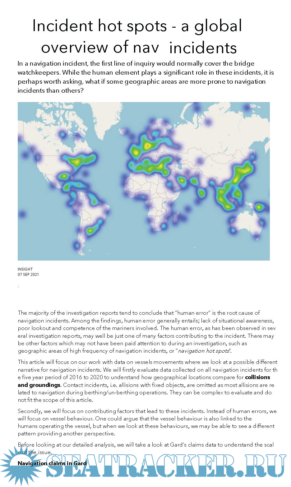 Incident hot spots - a global overview of navigation incidents dated 07 SEP 2021