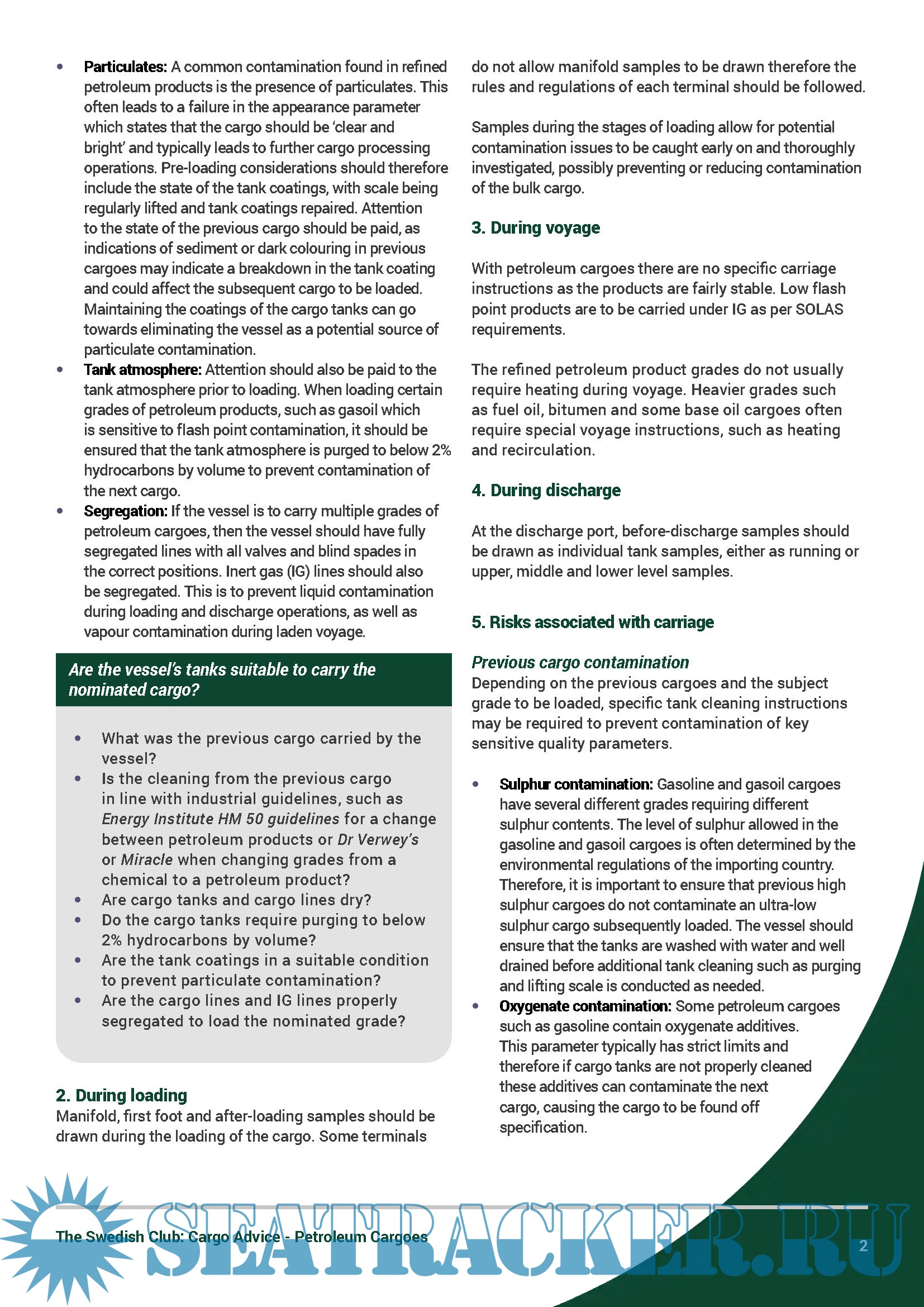 Guidelines for the shipment of petroleum cargoes by The Swedish P&I Club1. Pre-loading