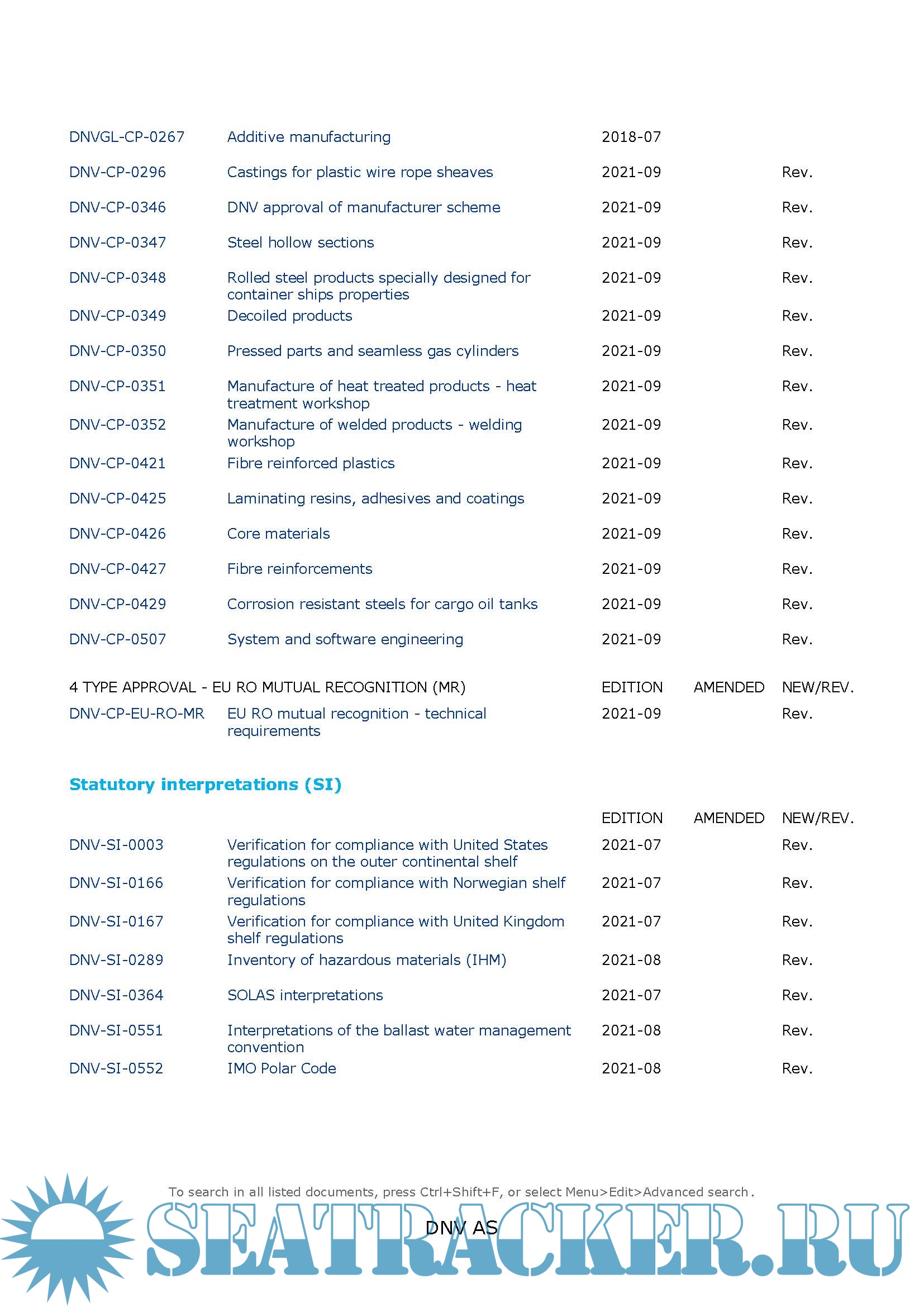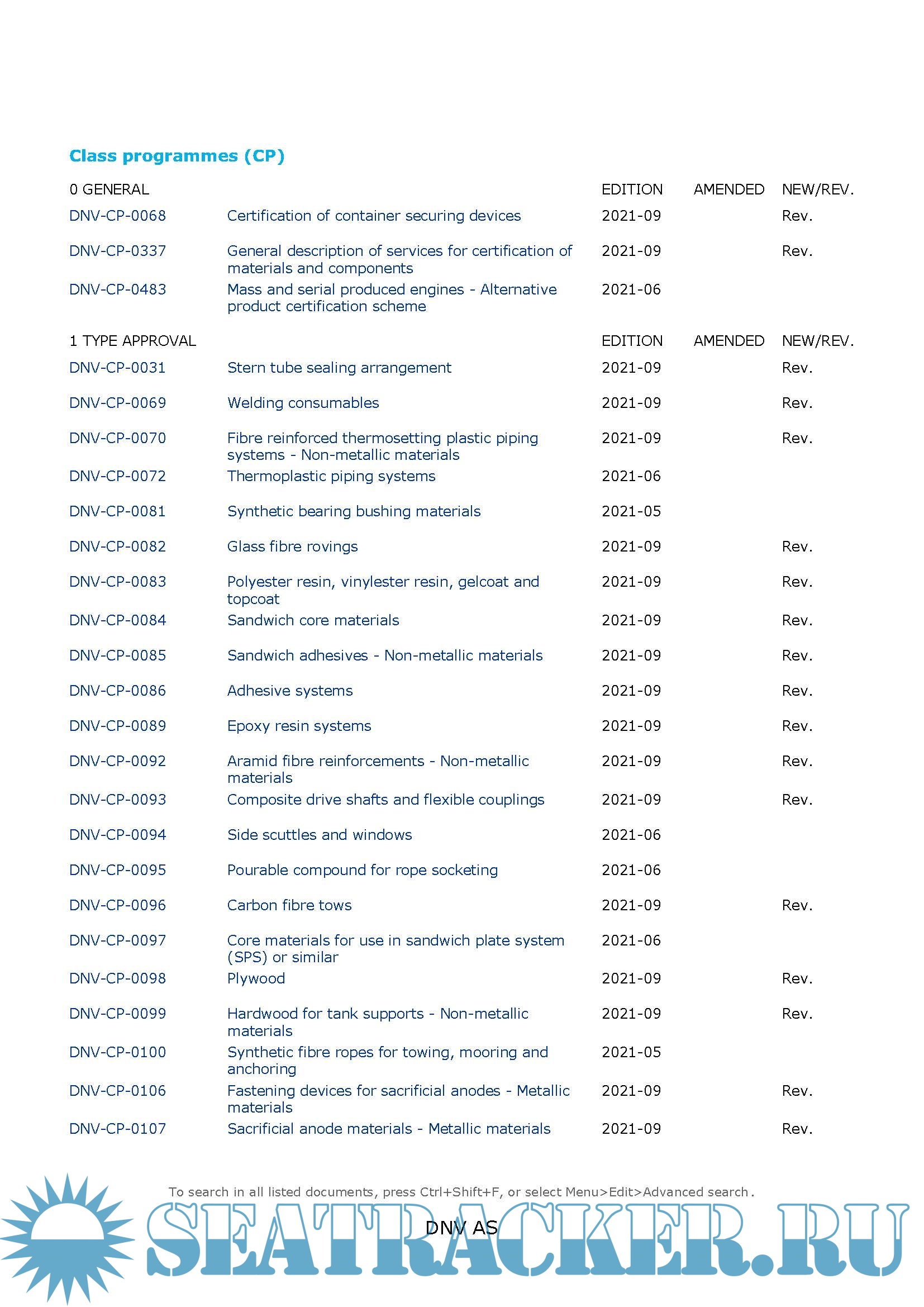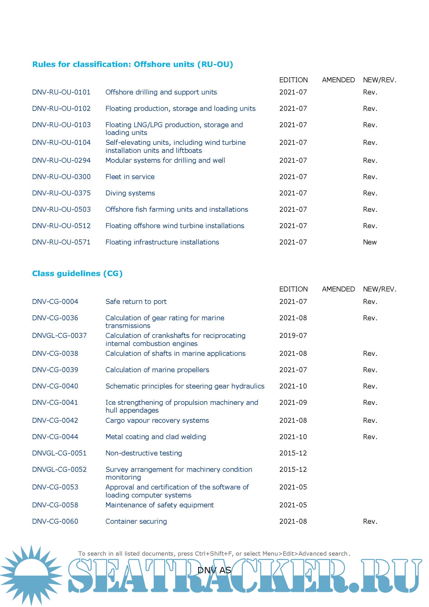 Description: DNV Rules, class guidelines, class programmes, offshore standards and statutory interpretations