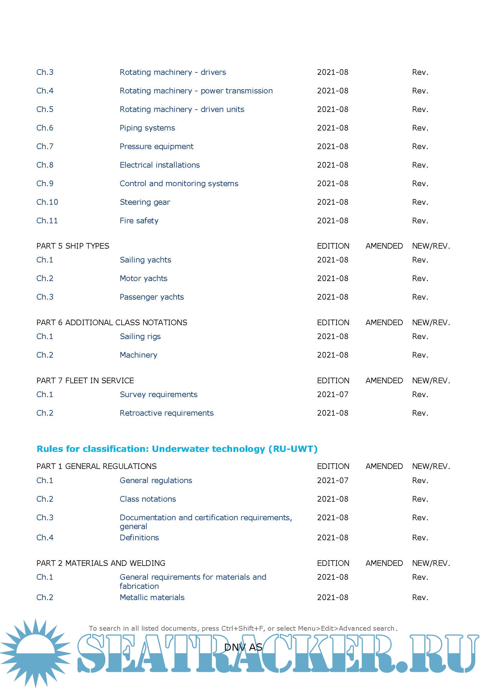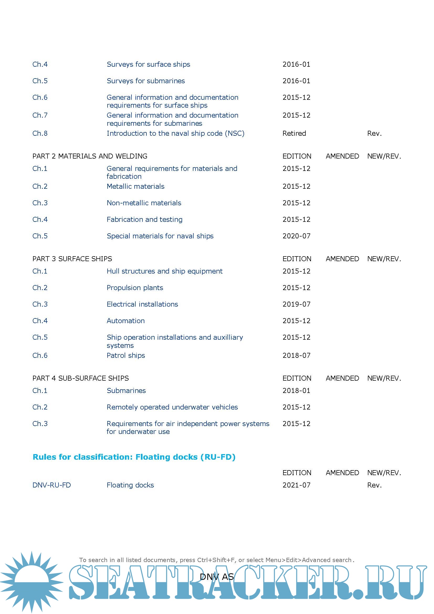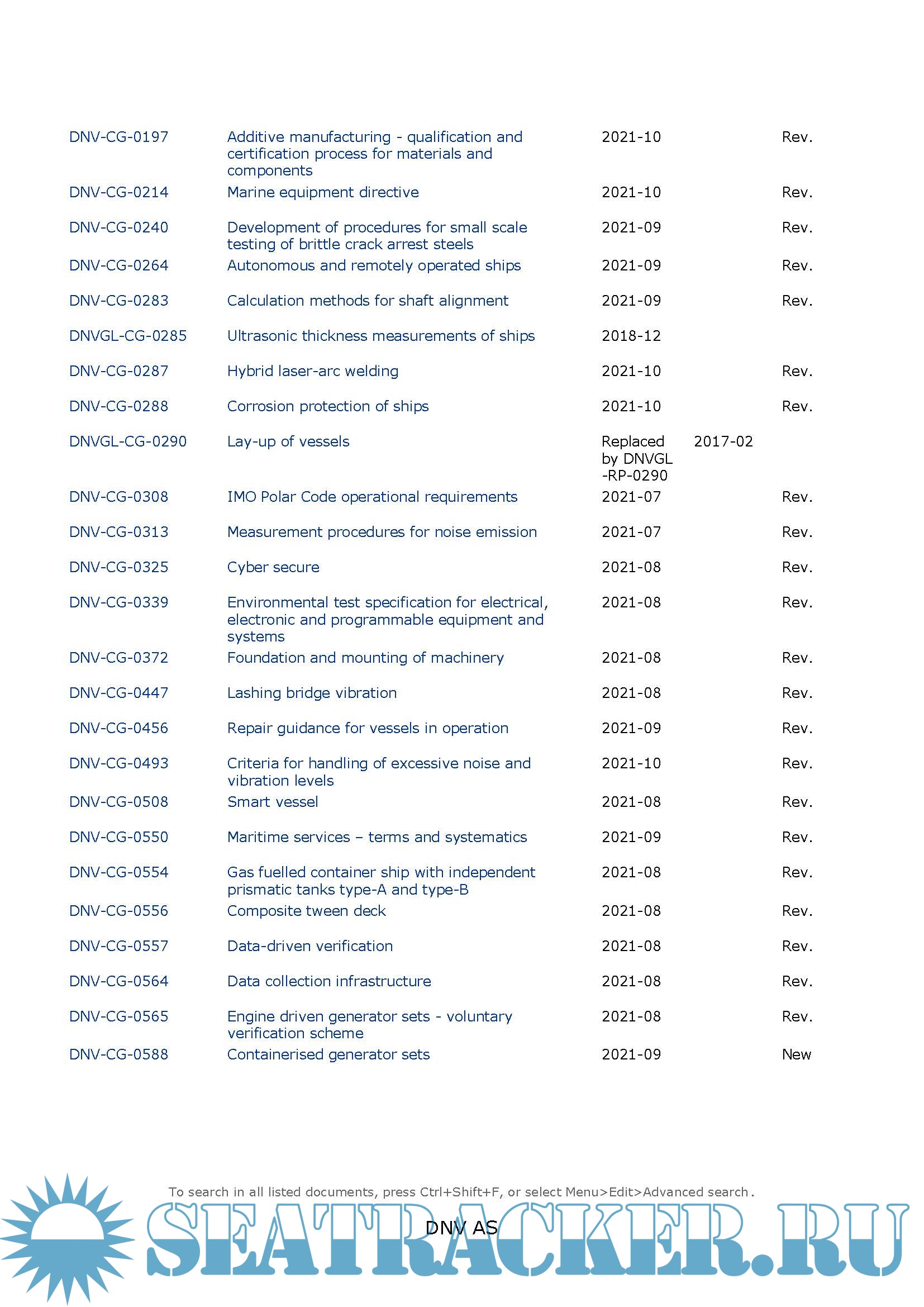 Year: 2021 Language: english Author: DNV Genre: Technical book Format: PDF Quality: eBook Pages count: Multiple Description: DNV Rules, class guidelines, class programmes, offshore standards and statutory interpretations Interlinked package including the following documents: - Rules for classification (GEN, SHIP, HSLC, INV, YACHT, UWT, NAV, NAVAL, FD, OU) - Class guidelines (CG) - Class programmes (CP) - Offshore standards (OS) - Statutory interpretations (SI) * Up to October, 2021