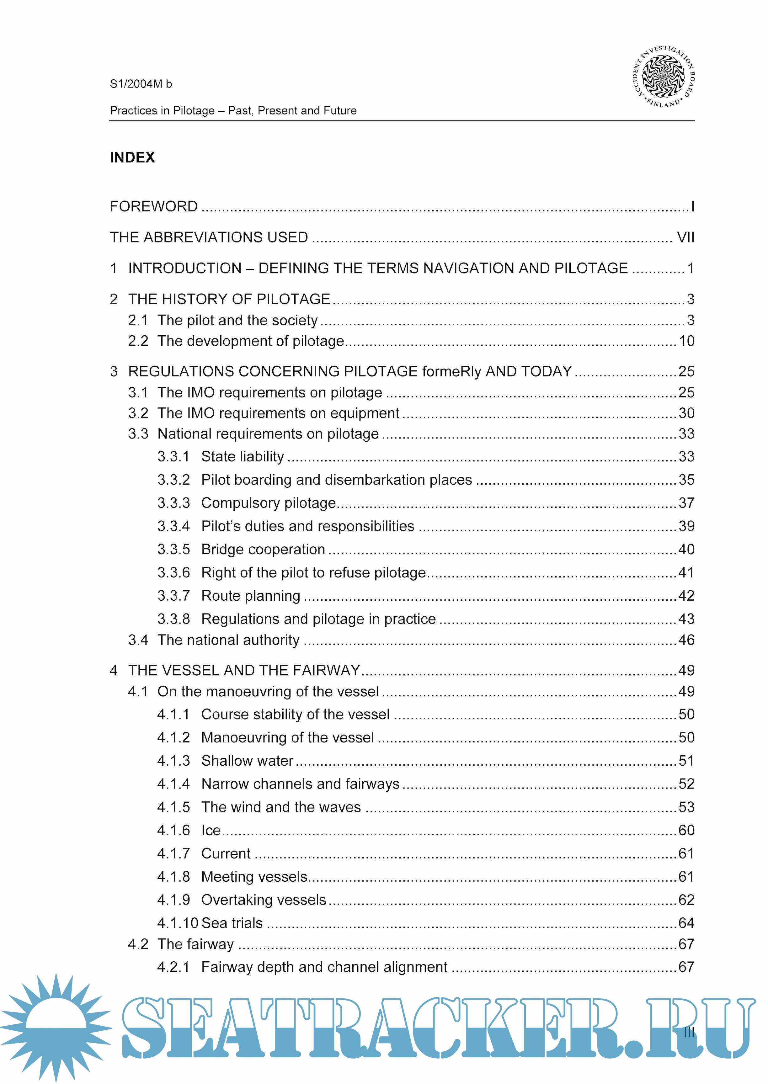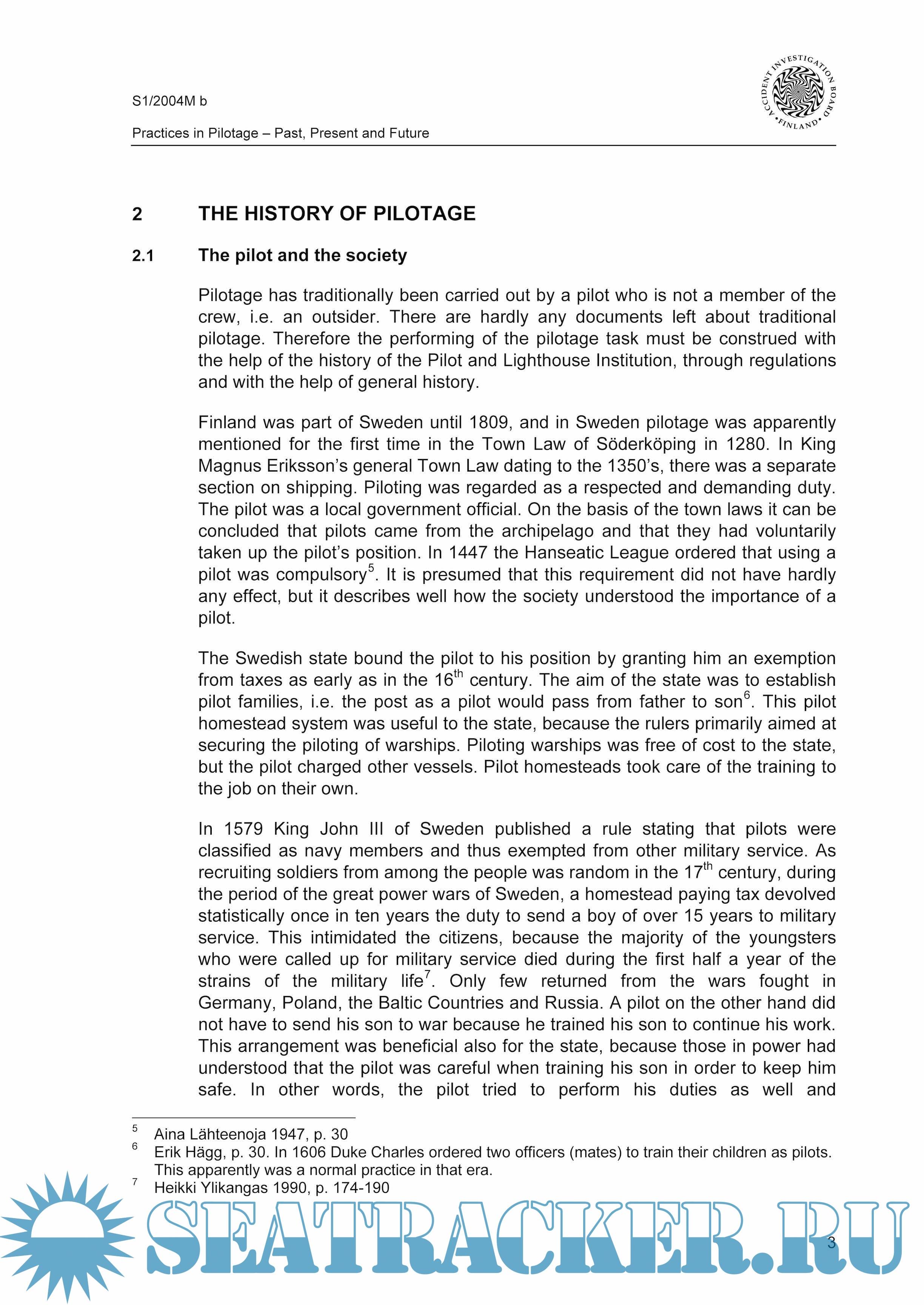 Chapter 1 of this report presents a definition of pilotage, whereas chapter 2 of this Safety Study deals with the history and development of pilotage until the middle of the 20th century. Chapter 3 covers the international and national rules and regulations with reference to pilotage.