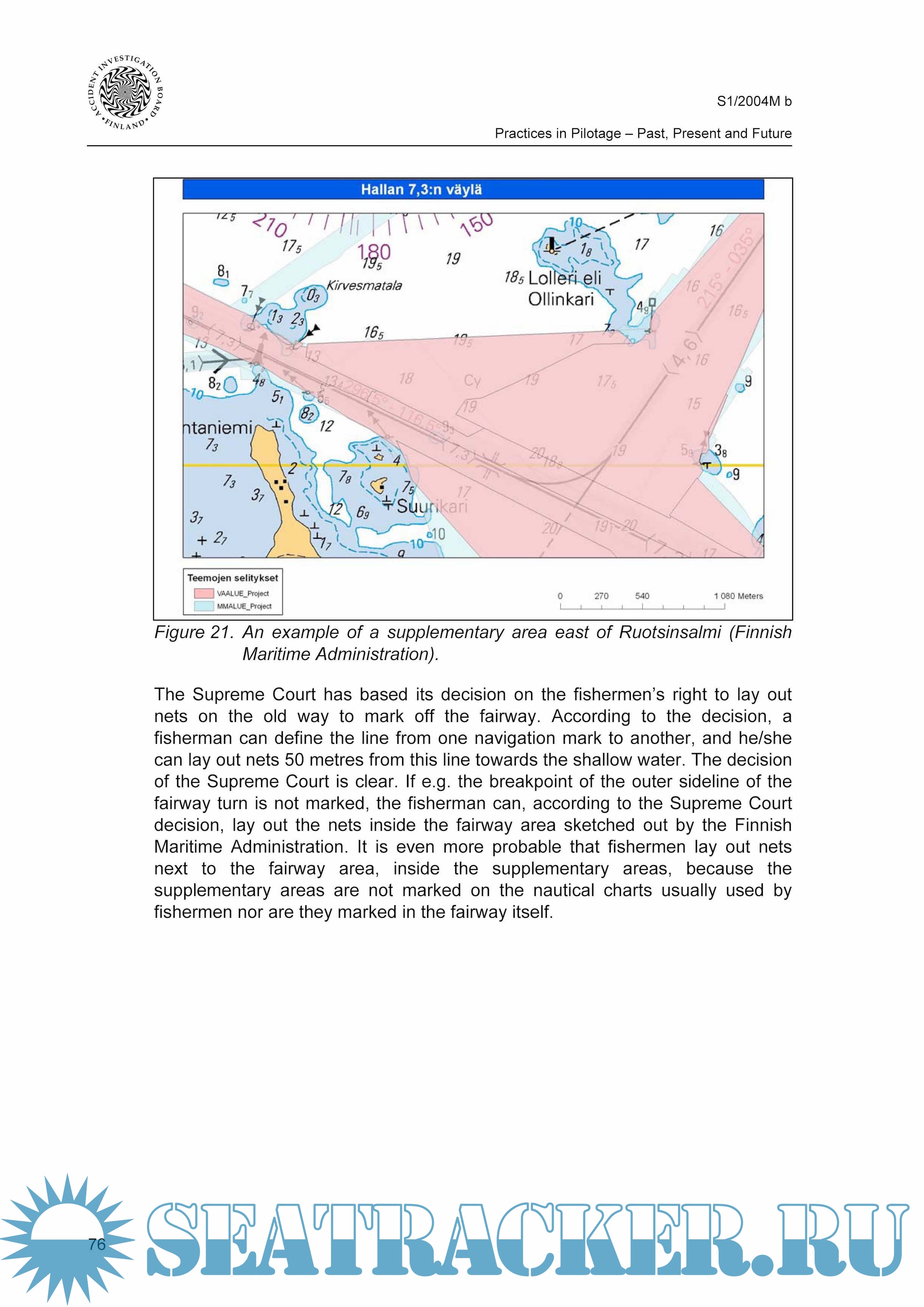 Description: The investigation reached the conclusion that it would be advisable, with reference to improving the safety of pilotage and seafaring, to develop good pilotage practices in such a way that pilotage would be improved by making use of the possibilities offered by the new navigation equipment and that cooperation on the bridge would be an essential part of the new method for providing pilotage.