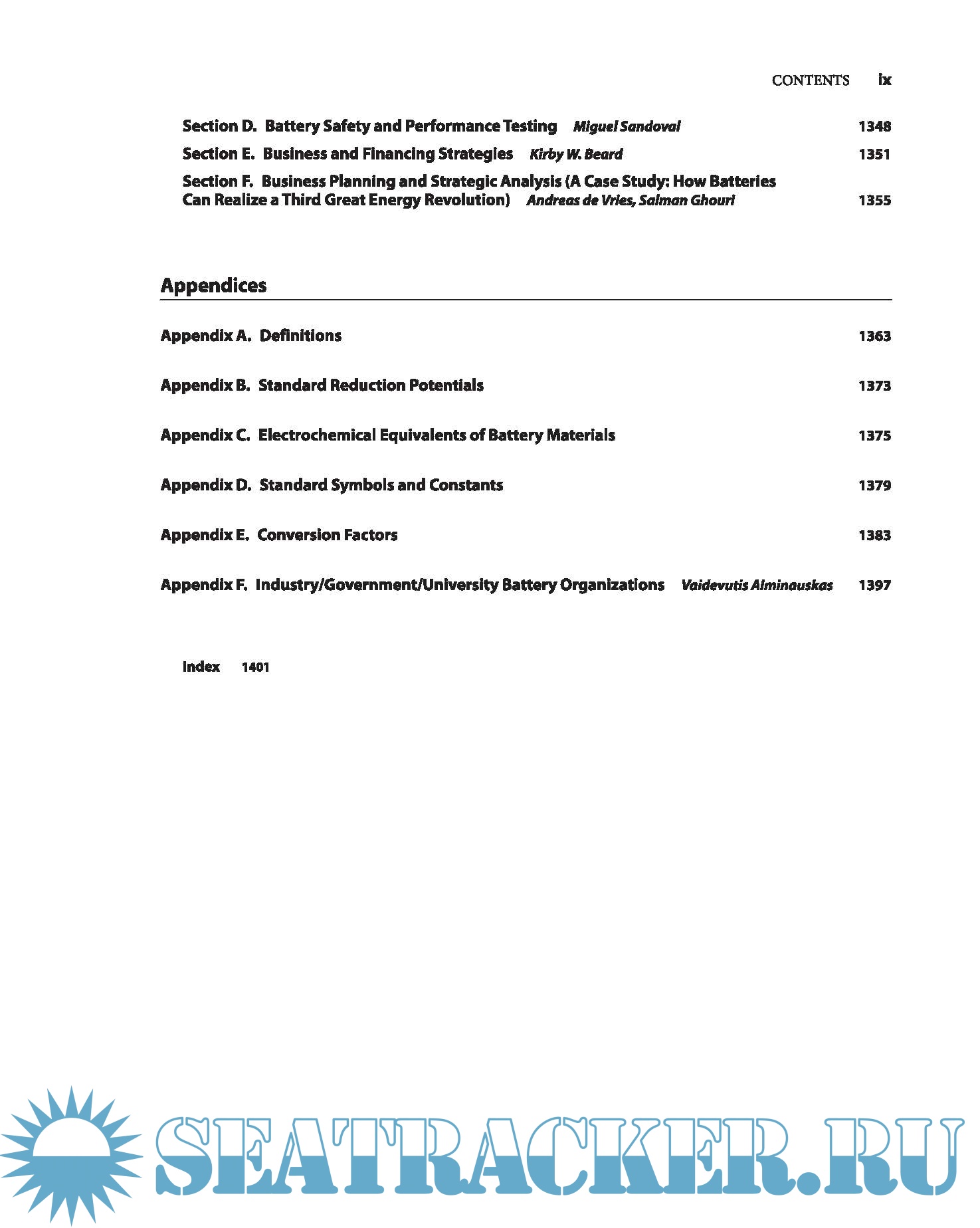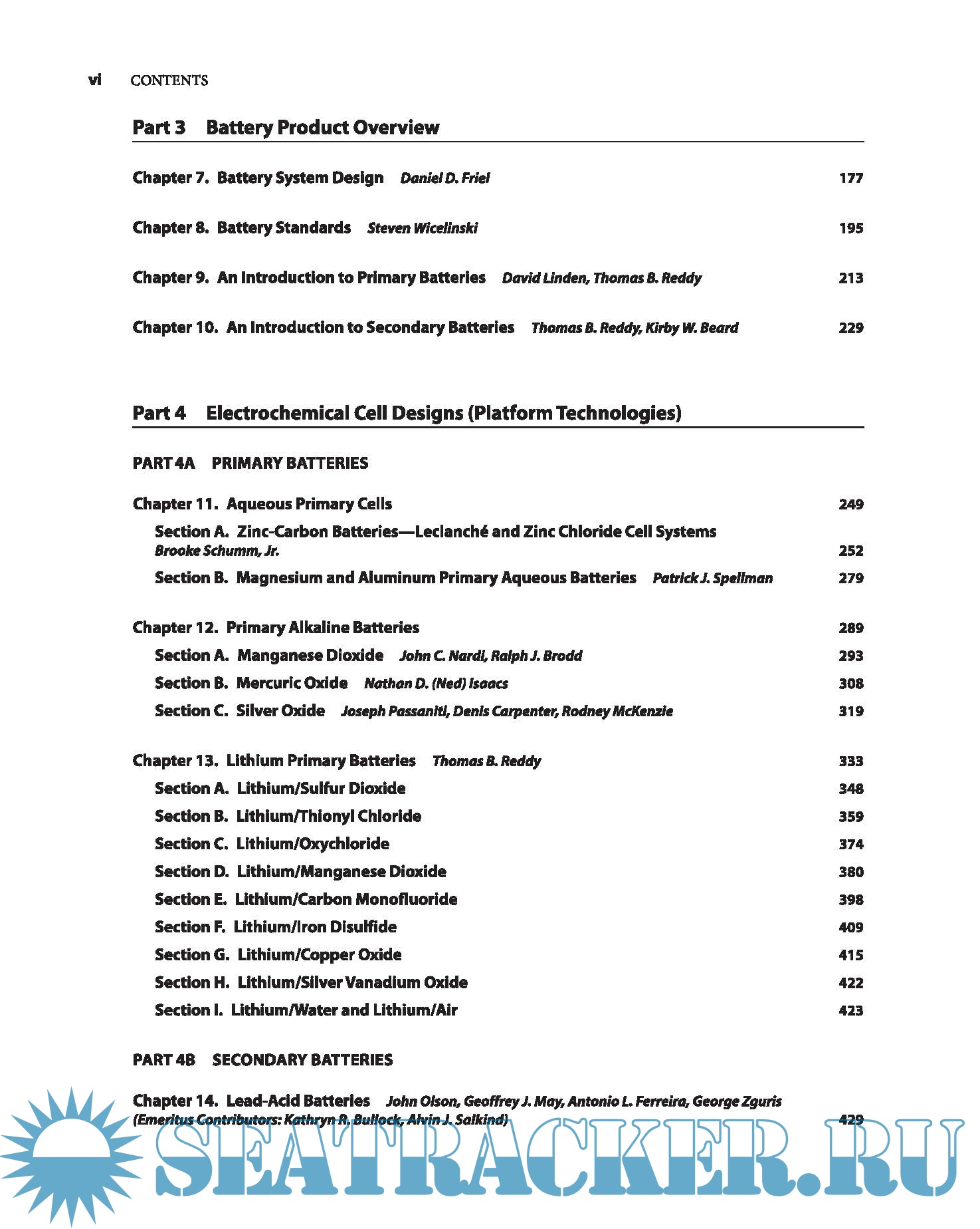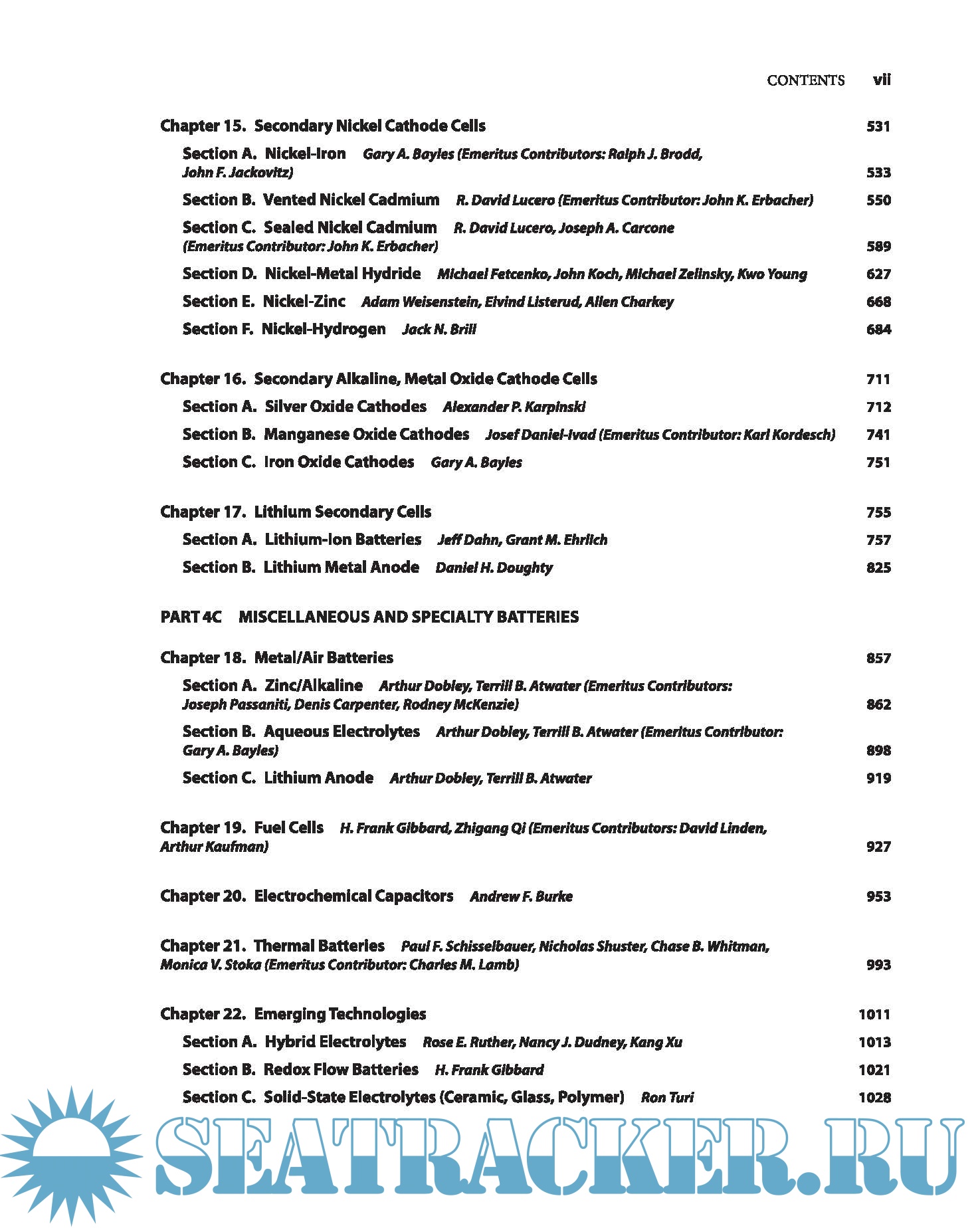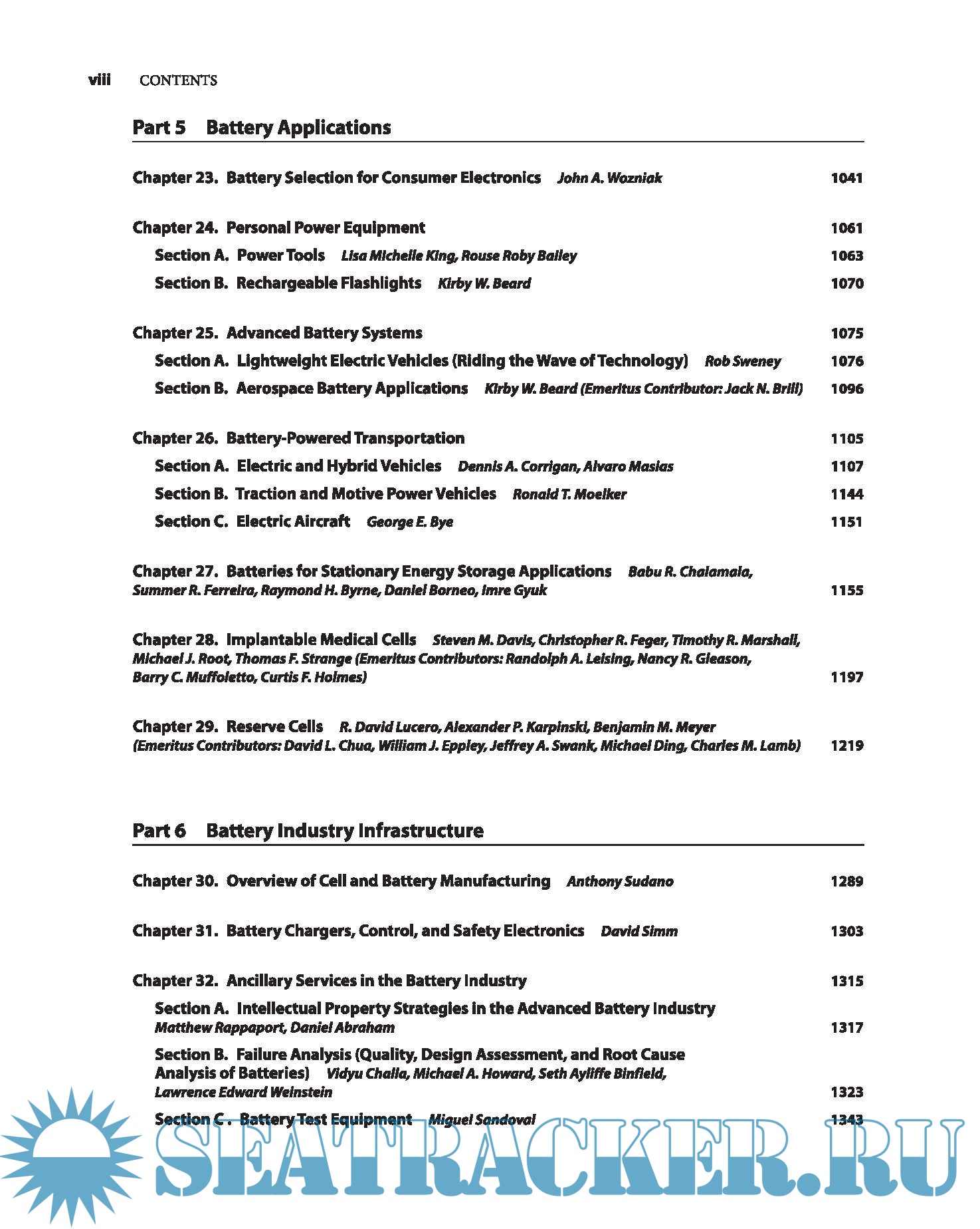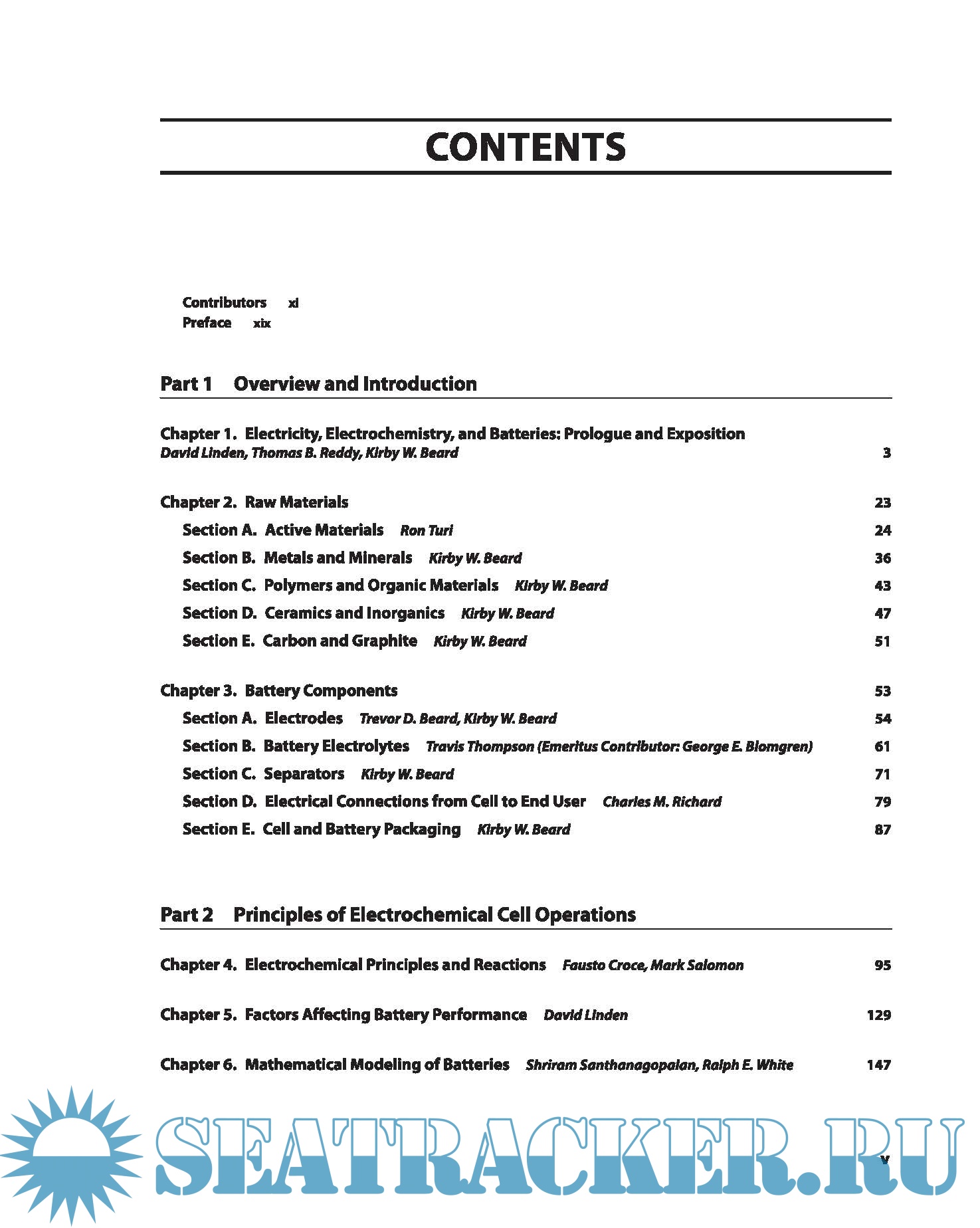 Year: 2019 Language: english Author: Kirby W. Beard Genre: Technical book Publisher: McGraw-Hill Education Edition: 5th edition (19 May 2019) ISBN: 9781260115925 Format: PDF Quality: eBook Pages count: 1458 Description: This fully updated guide offers complete coverage of batteries and battery usage―from classic designs to emerging technologies. Compiled by a pioneer in secondary lithium batteries, the book contains all the information needed to solve engineering problems and make proper battery selections. You will get in-depth descriptions of the principles, properties, and performance specifications of every major battery type. Linden’s Handbook of Batteries, Fifth Edition, contains cutting-edge data and equations, design specifications, and troubleshooting techniques from international experts. New chapters discuss renewable energy systems, battery failure analysis, lithium-ion battery technology, materials, and component design. Recent advances in smartphones and hybrid car batteries are clearly explained, including maximizing re-chargeability, reducing cost, improving safety, and lessening environmental impact. Coverage includes: • Electricity, electrochemistry, and batteries • Raw materials • Battery components • Principles of electrochemical cell operations • Battery product overview • Electrochemical cell designs (platform technologies) • Primary batteries • Secondary batteries • Miscellaneous and specialty batteries • Battery applications • Battery industry infrastructure :