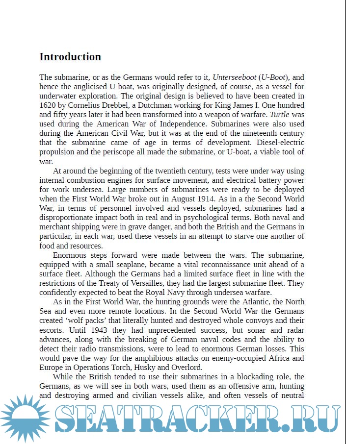 Year: 2009 Language: english Author: Jon Sutherland & Diane Canwell Publisher: Pen & Sword Maritime ISBN: 978 1 84884 0454 Format: PDF Quality: eBook Pages count: 172 Description: 2.20PM Directly in front of us I sighted four funnels and the masts of a passenger steamer at right angles to our course coming from the SW and going towards Galley Head. 3:10 PM Torpedo shot at a distance of 700 meters below the surface - from the log of the German submarine U–20. The explosion that followed changed history as the date of the ship's log was may 7, 1915, the steamer was the Lusitania, and the torpedo sent 1195 innocent men, women, and children to a watery grave. In 1914, U-Boats were a new and untried weapon, and when such a weapon can bring a mighty empire to the briink of defeat there is a story worth telling. Edwyn Gray's The U-Boat War is the history of the Kaiser's attempt to destroy the British Empire by a ruthless campaign of unrestricted submarine warfare. It opens with Germany's first tentative experiments with the submarines and climaxes with the naval mutiny that helped bring down the Kaiser. In between is is a detailed account of a campaign of terror which, by April 1917,had the British Empire on the verge of surrender. The cost in lives and equipment was staggering. On the German side, 4894 sailors and 515 officers lost their lives in action; 178 German Submarines were destroyed by the allies; 14 were scuttled and 122 surrendered. According to the most reliable sources, 5,708 ships were destroyed by the U-Boats and 13,333 non-combatants perished in British Ships. World figures for civilian casualties were never released The U-Boat War is a savage but thrilling account of men fighting for their lives beneath the sea, and of the boats that changed the face of naval warfare.