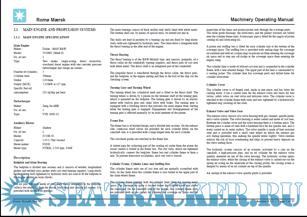 CPT Maersk Ramsey – IMO 9275268 - Machinery Operating Manual - DALIAN SHIPYARD [2004, PDF]