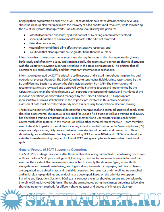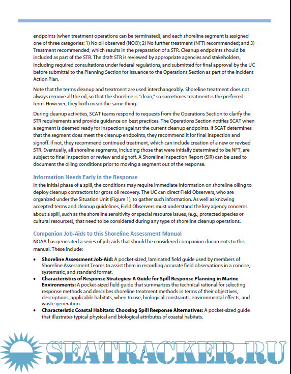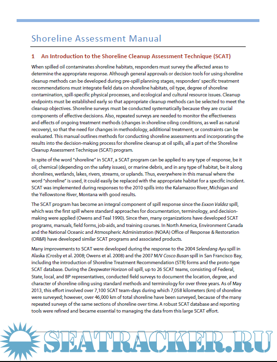 Year: 2013 Language: english Author: NOAA Genre: Manual Format: PDF Quality: eBook Pages count: 154 Description: When spilled oil contaminates shoreline habitats, responders must survey the affected areas to determine the appropriate response. Although general approvals or decision tools for using shoreline cleanup methods can be developed during pre-spill planning stages, responders’ specific treatment recommendations must integrate field data on shoreline habitats, oil type, degree of shoreline contamination, spill-specific physical processes, and ecological and cultural resource issues. Cleanup endpoints must be established early so that appropriate cleanup methods can be selected to meet the cleanup objectives