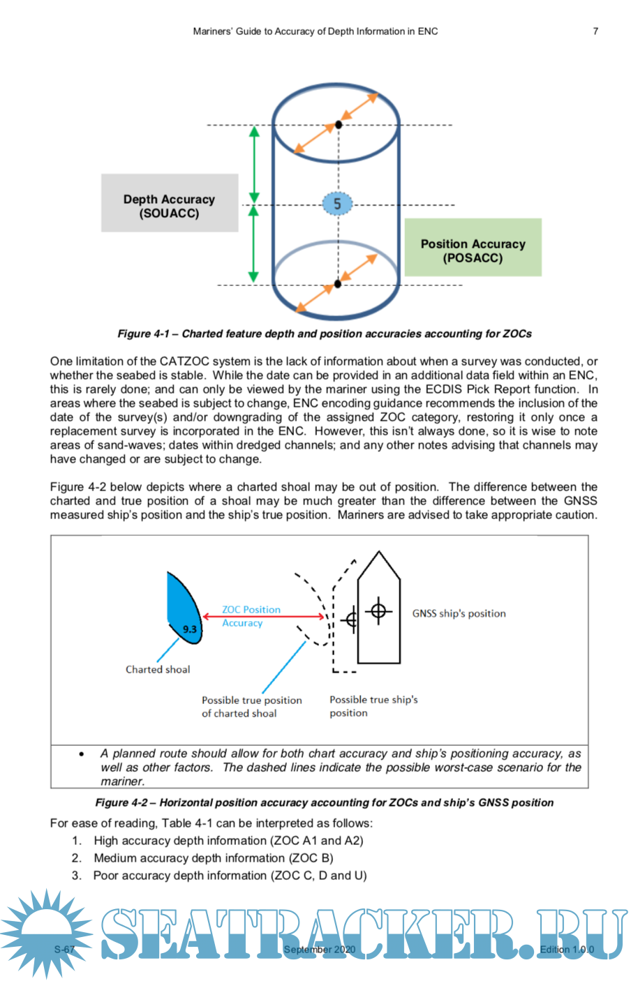 Description: IHO publication S-67 “Mariners Guide to Accuracy of Depth Information in ENC” is a guide to navigators, and navigator training organizations, on the degree of confidence they should have in the adequacy and accuracy of charted depths and their positions in an Electronic Navigational Chart.