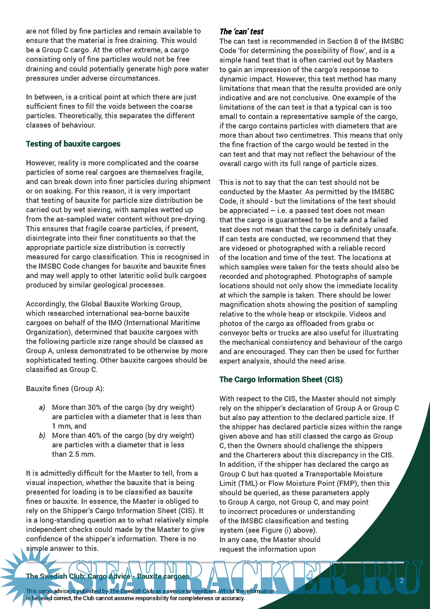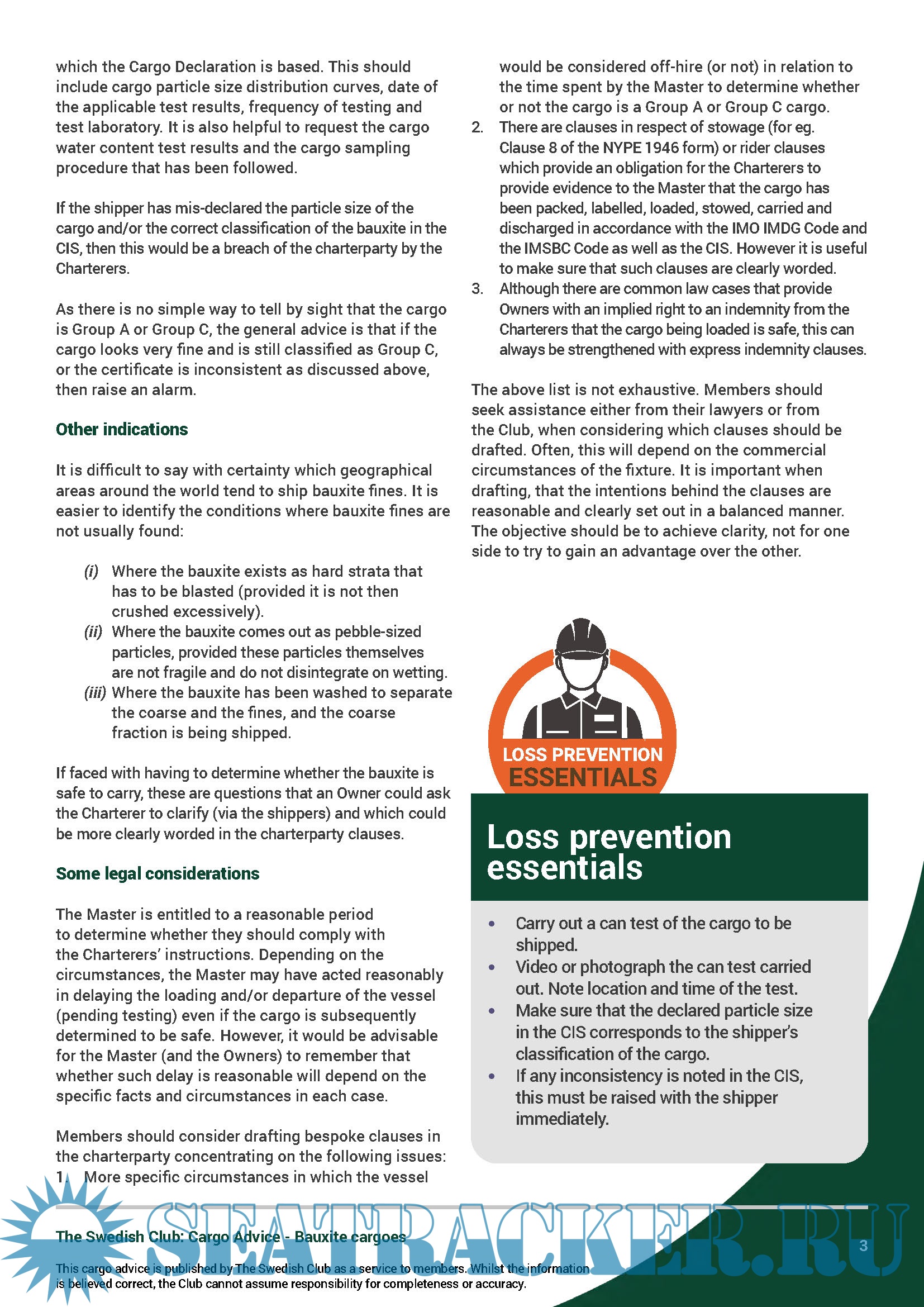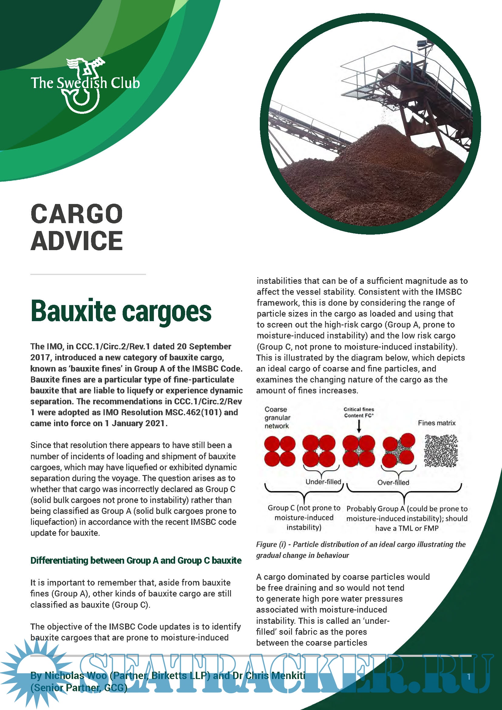 Description: The Swedish Club recently launched a cargo advice Guide, focusing on cargos of Bauxite.
