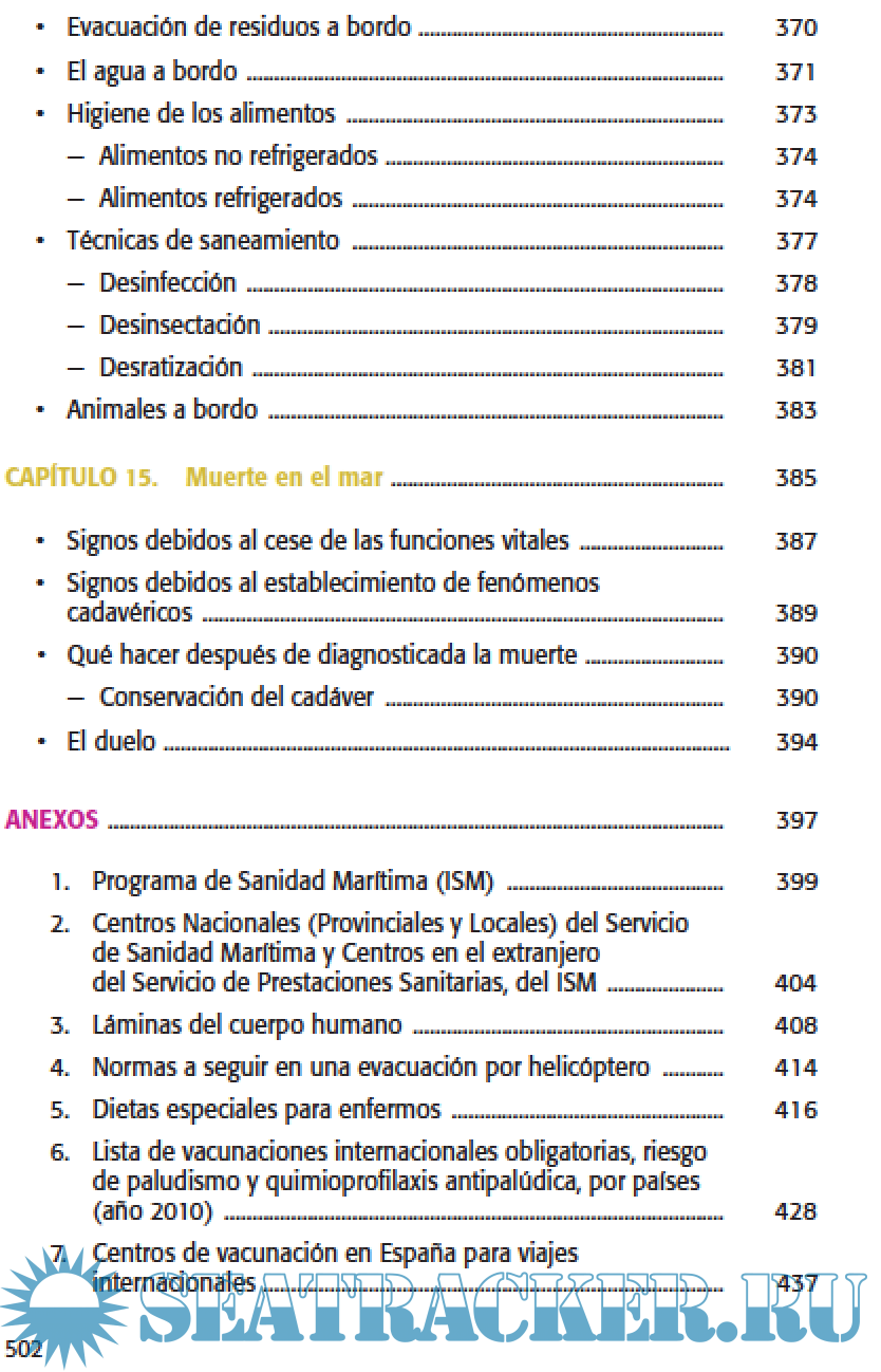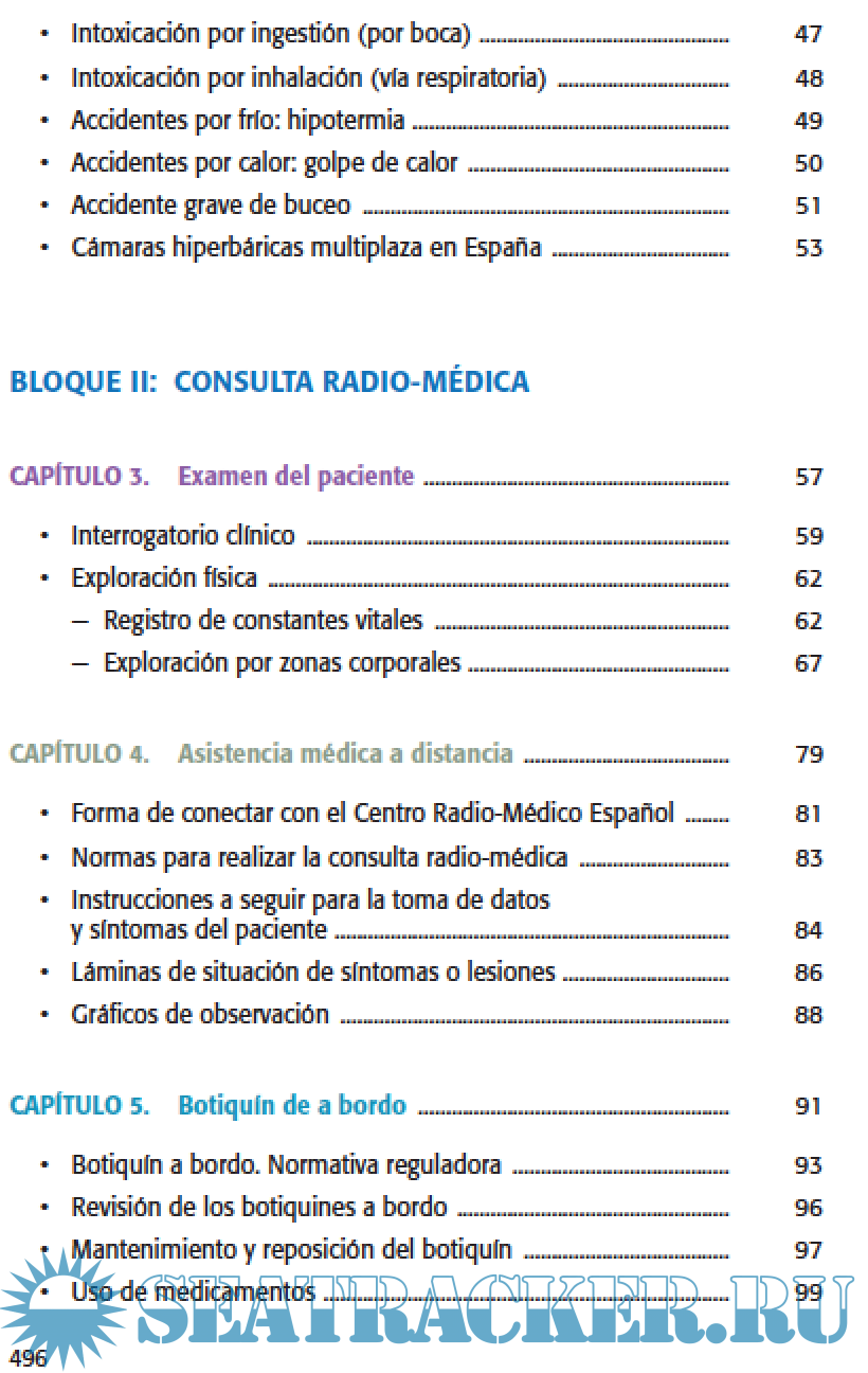 Year: 2021 Language: spanish Author: Instituto Social de la Marina Genre: Guide Publisher: ISM Format: PDF Quality: eBook Pages count: 511 Description: Desde los comienzos de la navegación, el trabajador del mar ha estado expuesto a las vicisitudes de un ambiente hostil y solitario cada vez que salía a navegar, amenazado por múltiples factores no controlables, como las condiciones meteorológicas, la competencia con otros barcos y las enfermedades que acababan con la salud de los tripulantes. De hecho, han sido estas últimas las causantes de un mayor número de bajas entre los marineros. Porque cuando se está embarcado, no sólo pueden ocurrir accidentes, sino que pueden aflorar enfermedades, que además pueden ser rápidamente trasmisibles y pueden conducir a una situación límite. Con el avance en las nuevas tecnologías (teléfonos satelitales) todos los buques que lo precisen, pueden ponerse en contacto con el Centro Radiomédico Español (CRME) y solicitar consejo médico. Porque no sólo el Centro Radiomédico es el pilar de la Telemedicina que se presta diariamente y las veinticuatro horas del día, a los trabajadores del mar que están trabajando en cualquier punto del planeta. Otro pilar esencial que la hace posible, es la formación que se imparte a sus tripulantes y a los responsables sanitarios a bordo, que cuentan con una Guía Sanitaria actualizada y completa como es la que se presenta en este libro. Gracias a sus contenidos actualizados y que abarcan cualquier tipo de situación sanitaria a bordo, los tripulantes que se embarquen pueden estar seguros de tener una herramienta esencial que les permitirá afrontar cualquier evento médico, desde una herida con anzuelo, una amputación o una reanimación a vida o muerte. Esta Guía Sanitaria a Bordo, es una revisión con los mismos contenidos pero actualizados, de los que soportaban las ediciones anteriores. En ella, han participado múltiples compañeros del Instituto Social de la Marina. Aunque es inherente a la formación presencial que también imparte el ISM, puede servir por sí misma, como el mayor respaldo para cuantos tienen que resolver un problema médico en la distancia. Gracias a su exposición de contenidos, clara y sencilla y al contenido de los botiquines, así como al respaldo telefónico, nadie que faene en alta mar, se sentirá desprotegido sin saber cómo actuar. La crisis sanitaria de la covid-19 ha puesto de manifiesto la gran importancia de la telemedicina con la que se puede realizar una consulta en tiempo real, actividad que viene realizando el CRME desde hace muchos años, manteniendo una comunicación rápida, eficaz y permanente. Por esto, en la presente actualización se ha añadido información científica del coronavirus, así como las recomendaciones de las autoridades sanitarias para la realización de RCP en tiempos de la pandemia, tanto en adultos como en niños. Since the beginning of navigation, the sea worker has been exposed to the vicissitudes of a hostile and lonely environment every time he went sailing, threatened by multiple uncontrollable factors, such as weather conditions, competition with other boats and diseases that destroyed the health of the crew. In fact, the latter have been the cause of a greater number of casualties among the sailors. Because when embarked, not only can they occur accidents, but diseases can emerge, which can also be rapidly transmissible and can lead to an extreme situation. With the advancement in new technologies (satellite phones) All vessels that require it, can contact the Spanish Radiomedical Center (CRME) and request medical advice. Because not only the Radiomedical Center is the pillar of Telemedicine that is provided daily and twenty-four hours a day, to the workers from the sea that are working anywhere on the planet. Other The essential pillar that makes it possible is the training given to its crew members and health officials on board, who have an updated and complete Sanitary Guide such as the one presented in this book. Thanks to its updated content that covers any type of situation health on board, embarking crew members may be confident of having an essential tool that will allow them to face any medical event, from a hook wound, an amputation or a life or death resuscitation. This On-Board Health Guide is a revision with the same contents but updated, of those that supported the previous editions. In her, multiple colleagues from the Social Institute of the Navy have participated. Although it is inherent to the face-to-face training that it also imparts the ISM, can serve by itself, as the greatest support for those who they have to solve a medical problem in the distance. Thanks to your presentation of contents, clear and simple and to the contents of the kits, as well as the telephone backup, no one who works in the high seas, you will feel unprotected without knowing how to act. The health crisis of covid-19 has highlighted the great importance of telemedicine with which you can make a consultation in real time, an activity that the CRME has been carrying out for many years, maintaining fast, effective and permanent communication. For this, in this update scientific information has been added of the coronavirus, as well as the recommendations of the health authorities for performing CPR in times of the pandemic, both in adults as well as children. Additional info: Older version 2013 here: https://seatracker.club/viewtopic.php?t=40484