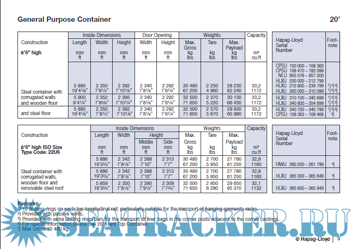 Description: Hapag-Lloyd - Container Specification