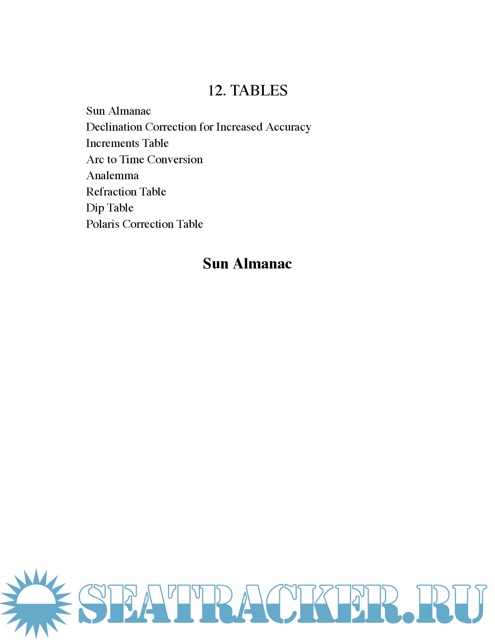 The almanac pages included have been custom designed to facilitate fast, easy solutions for Lat and Lon from the sun, plus we include a unique new Regiment of the North Star for easy Latitude by Polaris sights on any date.