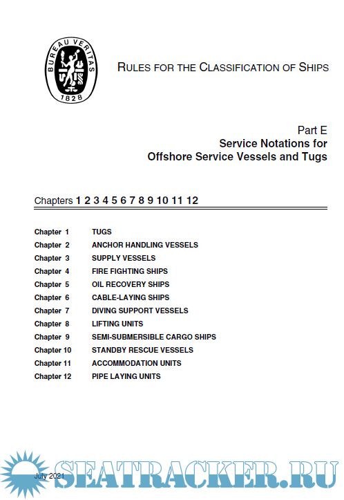 BV - Rules for the Classification of Steel Ships - PART E – Service Notations for Offshore Service - 2021