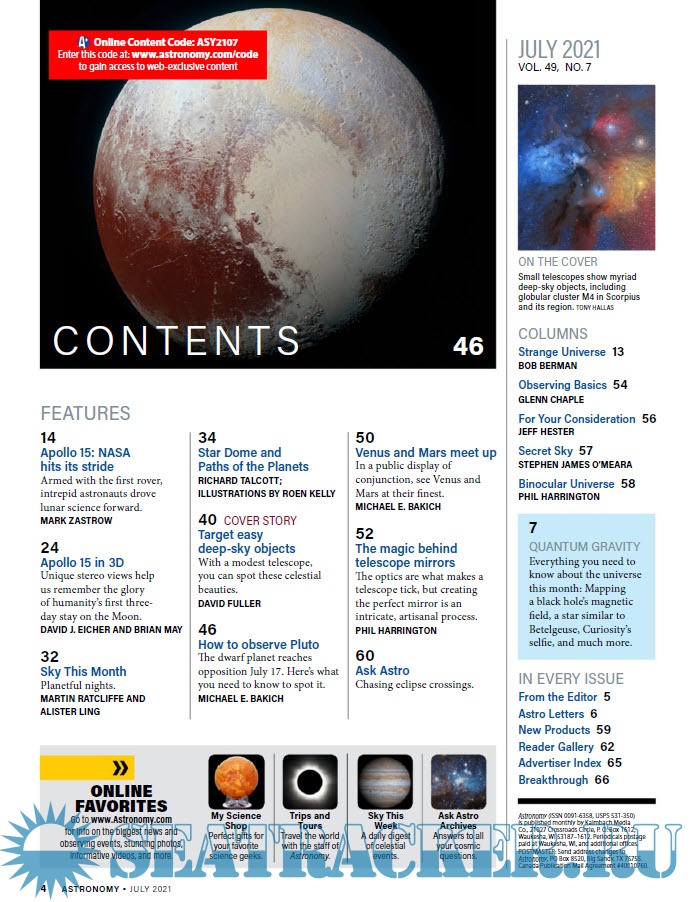 Description: Astronomy offers you the most exciting visually stunning thorough, and timely coverage of the heavens above. Each monthly issue includes expert science reporting, vivid color photography, complete sky-event coverage, spot-on observing tips, informative telescope reviews, and more.