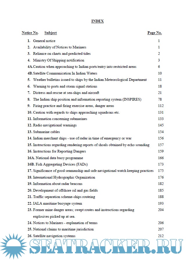 Year: 2020 Language: english Author: National Hydrographic Office, India Publisher: National Hydrographic Office, Dehradun Edition: 7th Format: PDF Quality: eBook Pages count: 232 Description: Notices published in this Edition are of permanent nature. Any amendment/addition to these Notices shall be issued through Fortnightly Indian Notices to Mariners. Mariners are therefore advised to “RETAIN THIS EDITION” till its supersession/cancellation by this office. Additional info: Containing Special Notices 1-28. Refer: https://seatracker.club/viewtopic.php?p=82652#82652