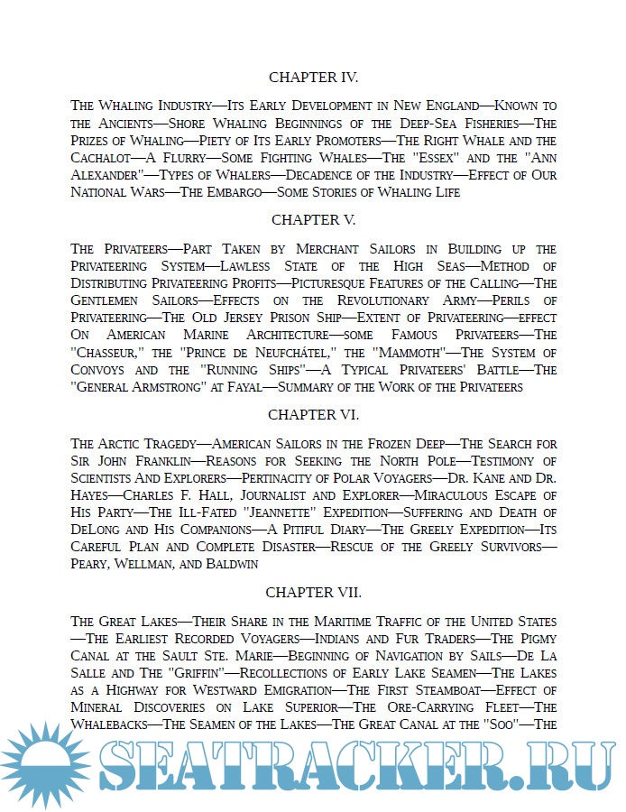 Description: When the Twentieth Century opened, the American sailor was almost extinct. The nation which, in its early and struggling days, had given to the world a race of seamen as adventurous as the Norse Vikings had, in the days of its greatness and prosperity turned its eyes away from the sea and yielded to other people the mastery of the deep. One living in the past, reading the newspapers, diaries and record-books of the early days of the Nineteenth Century, can hardly understand how an occupation which played so great a part in American life as seafaring could ever be permitted to decline. The dearest ambition of the American boy of our early national era was to command a clipper ship—but how many years it has been since that ambition entered into the mind of young America! In those days the people of all the young commonwealths from Maryland northward found their interests vitally allied with maritime adventure. Without railroads, and with only the most wretched excuses for post-roads, the States were linked together by the sea; and coastwise traffic early began to employ a considerable number of craft and men. Three thousand miles of ocean separated Americans from the market in which they must sell their produce and buy their luxuries. Immediately upon the settlement of the seaboard the Colonists themselves took up this trade, building and manning their own vessels and speedily making their way into every nook and corner of Europe. We, who have seen, in the last quarter of the Nineteenth Century, the American flag the rarest of all ensigns to be met on the water, must regard with equal admiration and wonder the zeal for maritime adventure that made the infant nation of 1800 the second seafaring people in point of number of vessels, and second to none in energy and enterprise.