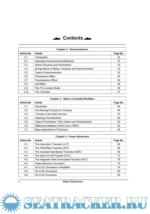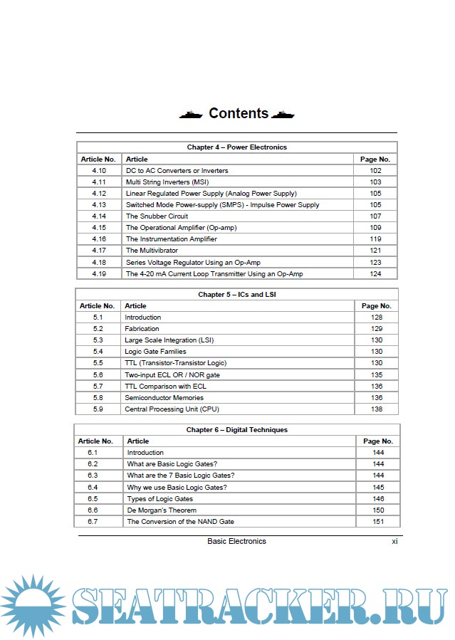 Year: 2021 Language: english Author: Elstan A. Fernandez Publisher: Zedkuailz Publishers Edition: 1st Format: PDF Quality: eBook Pages count: 209 Description: No matter where we go or what we do in this world today, Electronics plays a pivotal role. It is befitting to note that at the very beginning of the vast syllabus for the IMO Model Courses 7.02 and 7.04 for Engineers at the Management and Operational Levels and also 7.08 for ETOs, great stress has been laid on the knowledge and understanding of Basic Elecronics. This little book has been compiled from various sources and hence is not for commercial benefits but purely to help those who are interested to learn the subject. It thus aims at helping engineers recap their fundamentals and also apply the same in their work lives at sea and on land.