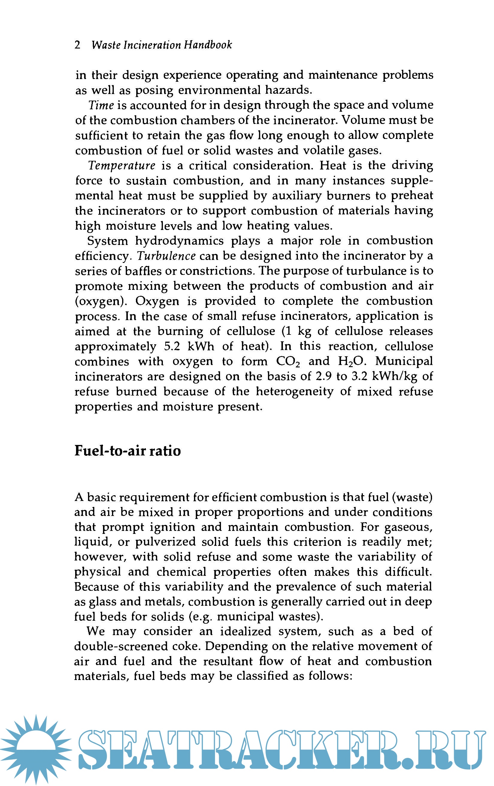 Year: 1992 Language: english Author: Paul Cheremisinoff Genre: Handbook Publisher: Butterworth Edition: 1st ISBN: 9781483161266 Format: PDF Quality: eBook Pages count: 155 Description: Waste Incineration Handbook discusses the basic concepts and data on wastes combustion, including the management of waste incineration as a means to control pollution, as well as the process technologies involved. The book reviews the combustion principles such as fuel-to-air ratio, the products of combustion, material and thermal balances. Incineration produces emissions in the form of particulate matter, odorous or noxious gases. Conventional particle capturing devices use gravity settling, inertia or momentum, filtration or electrostatic precipitation, and agglomeration via sonic mechanical means to facilitate removal by increasing particle size. Secondary combustion with or without catalysts, and wet scrubbing control are methods to control or eliminate objectionable odors. The design and operation of an efficient incinerator is based on proper proportions of air and fuel; sufficient temperature; adequate furnace volume; constant maintenance of ignition temperatures; and minimized fly-ash entrainment. The text also discusses on-site incineration and incineration at sea. The book is suitable for economists, environmentalists, ecologists, marine ecologists, and policy makers involved in environmental preservation and pollution control.