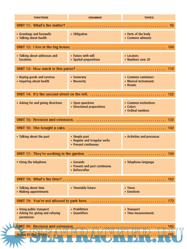 English Made Easy, Volume 1 consists of a total of 20 units arranged in groups of five. The first four units present language and provide learners the opportunities to practice as they learn. The first page of each unit has a list of all the words and phrases to be learned in that unit, together with a pronunciation guide. At the end of each unit, an entertaining story which uses the language that has just been learned is presented. The fifth unit in each group contains exercises designed to reinforce the language learned in the first four units.