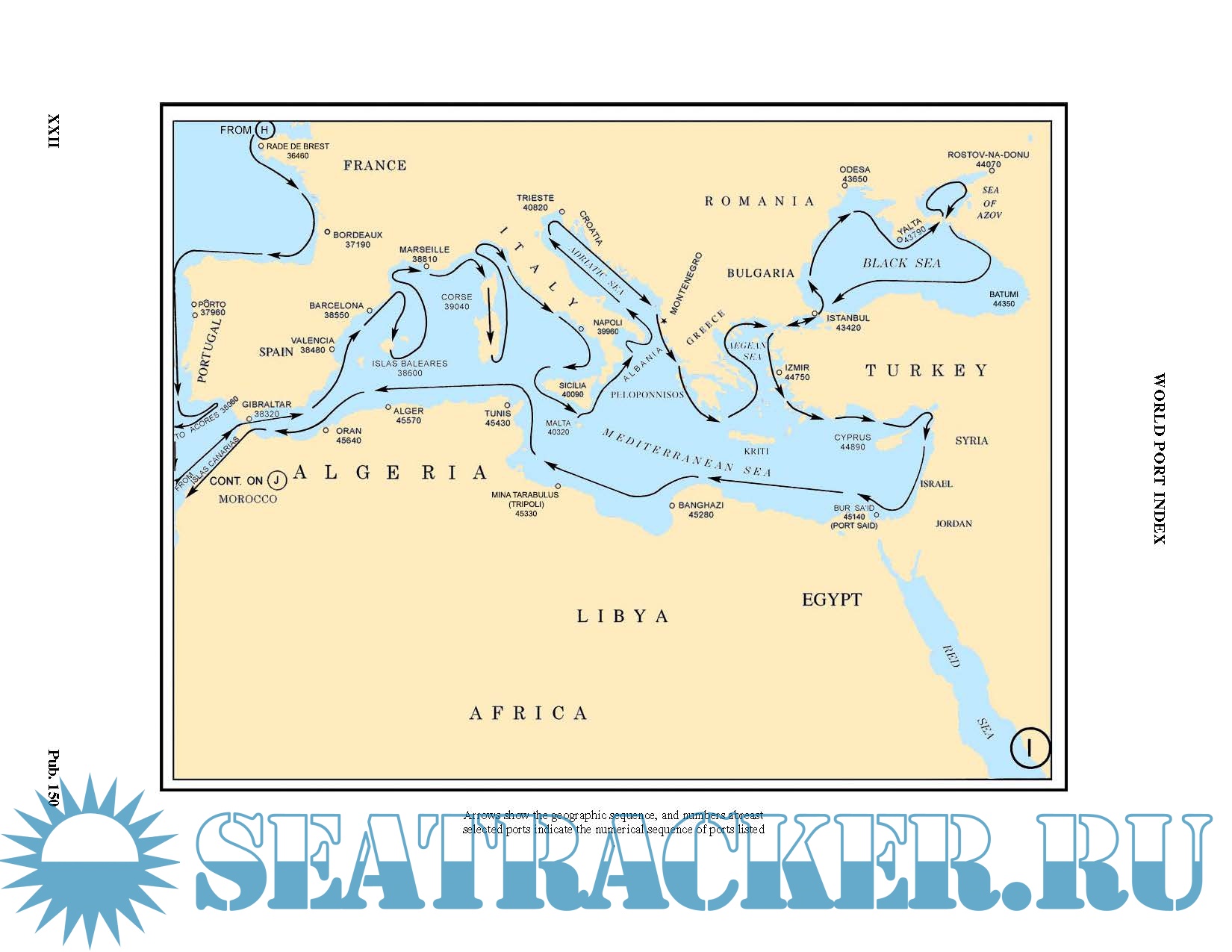 Description: The World Port Index (Pub 150) contains the location and physical characteristics of, and the facilities and services offered by major ports and terminals world-wide (approximately 3700 entries), in a tabular format. Entries are organized geographically, in accordance with the diagrams located in the front of the publication.