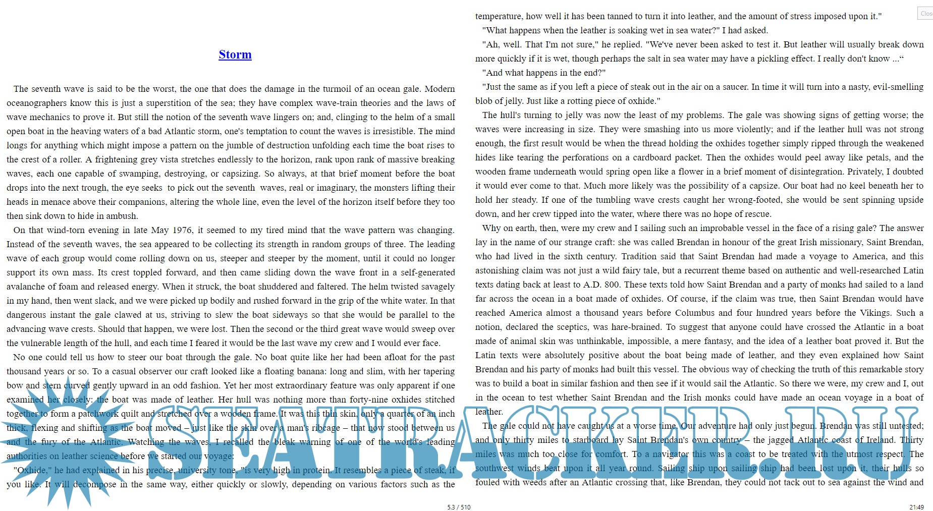 Year: 2018 Language: english Author: Tim Severin Genre: History Publisher: Lume Books Format: EPUB Quality: eBook Pages count: 510 Description: It has been described as the greatest epic voyage in modern Irish history. Tim Severin and his companions built a boat using only techniques and materials available in the sixth-century A.D, when St Brendan was supposed to have sailed to America. The vessel comprised forty-nine ox hides stitched together in a patchwork and stretched over a wooden frame. This leather skin was only a quarter of an inch thick. Yet Severin and his crew sailed Brendan from Brandon Creek in Dingle to Newfoundland, surviving storms and a puncture from pack ice. The Brendan Voyage is Tim Severin's dramatic account of their journey. Brilliantly written and impeccably researched, it is a classic of modern exploration and has been translated into 27 languages. It conveys unforgettably the sensation of being in a small, open boat alone in the vastness of the North Atlantic, visited by inquisitive whales, reaching mist-shrouded landfalls, and receiving a welcome from seafaring folk wherever the crew touched land.