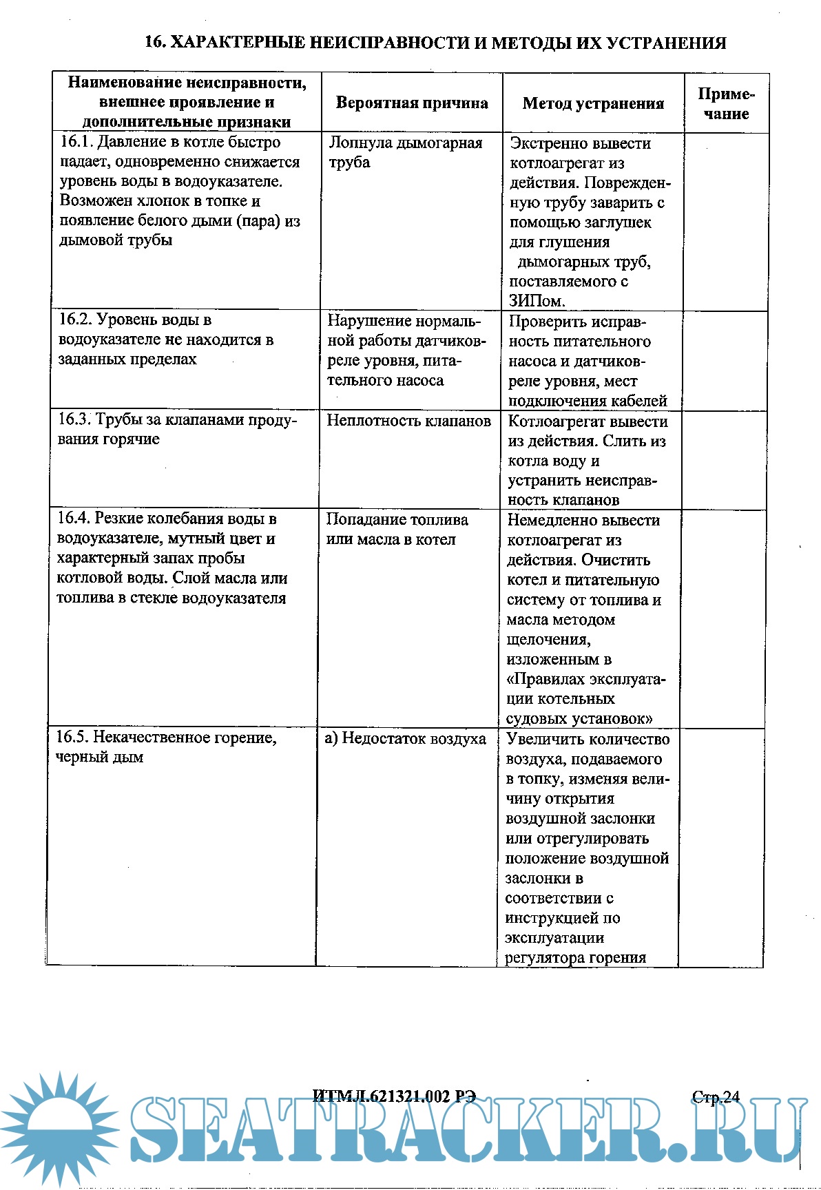 Описание: Котлоагрегаты вспомогательные паровые судовые автоматизированные газотрубные КГВ 0,25/3-М, КГВ 0,63/5-М, КГВ 1,0/5-М, КГВ 1,6/5-М. Настоящее руководство по эксплуатации является обязательным руководящим документом при обслуживании котлоагрегатов типа КГВ-М и предназначено для изучения устройств и правил их эксплуатации сцелью обеспечения полного использования технических возможностей котлоагрегатов и поддержания их впостоянной готовности к действию.