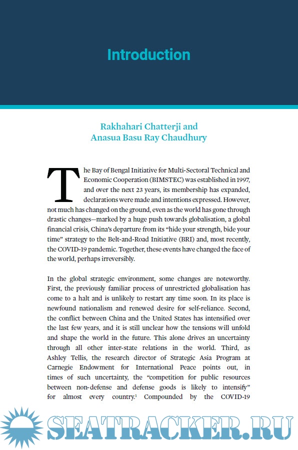 Description: The Bay of Bengal Initiative for Multi-Sectoral Technical and Economic Cooperation (BIMSTEC) was established in 1997. Over the next 23 years, its membership has expanded, declarations have been made, and intentions expressed. Yet little has changed on the ground, even as the world has gone through changes, some of them perhaps irreversible—marked by a huge push towards globalisation, a global financial crisis, China’s departure from its “hide your strength, bide your time” strategy to the Belt-and-Road Initiative (BRI) and, most recently, the COVID-19 pandemic.