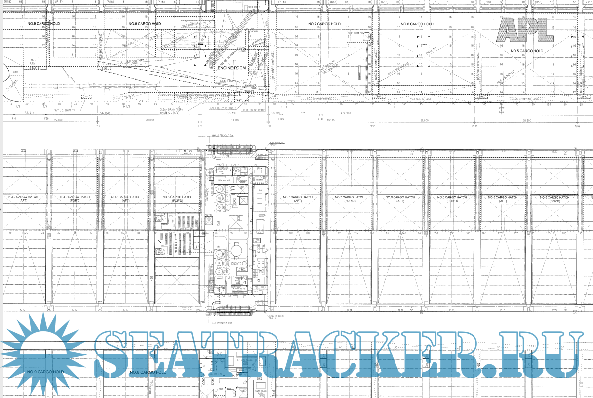 Description: General arrangement plan of very large container ship APL Russia (MOL Comfort) (C series of MOL), 8110 TEU.