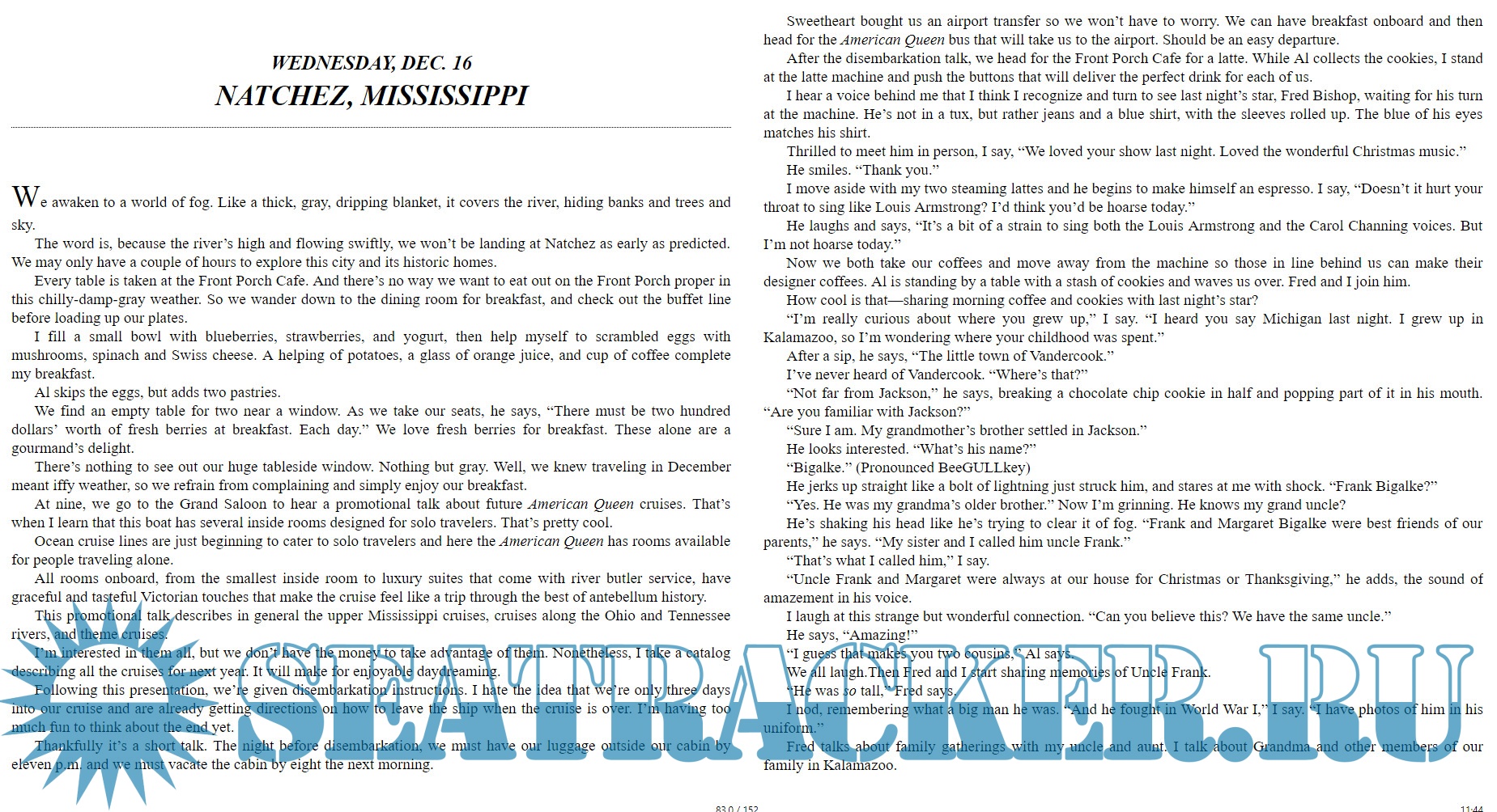 Description: In crossing another travel adventure off their bucket list, two retirees take a fascinating river cruise and find the heart and soul of the American South.