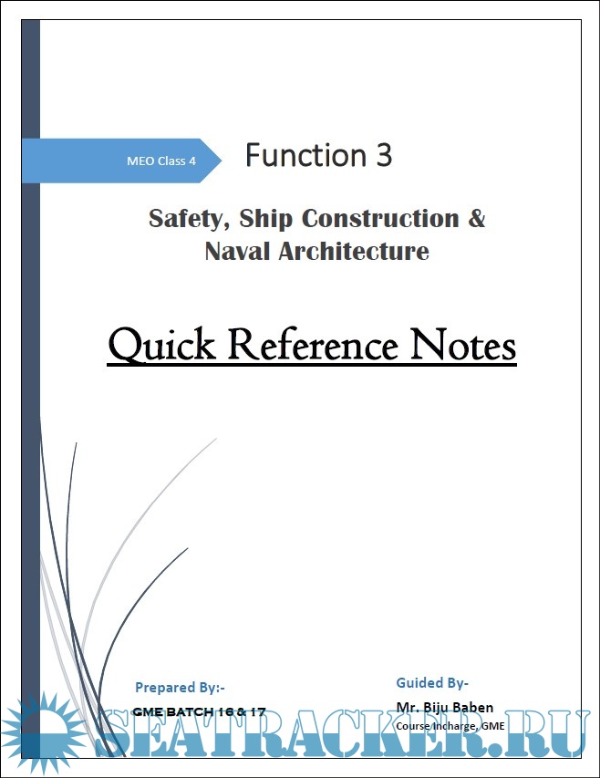 Description: Quick Reference Notes for Marine Engineering Officer (MEO) Class 4 exams. Function 3: Safety, Ship Construction & Naval Architecture.